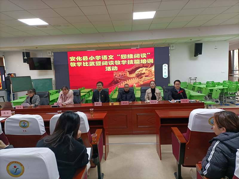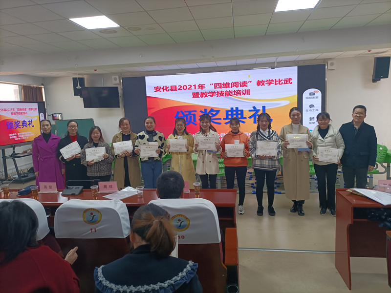 本网讯 11月26日,为期三天的安化县小学语文“四维阅读”教学比武暨阅读教学技能培训活动,在东坪镇萸江学校立志楼三楼多功能厅圆满落幕。全县各乡镇共200多名小学语文教师和领导参加了此次阅读教学研讨盛宴。经过激烈的角逐,黄莹、刘滢赢、邓俊杰、杨梦源、邓璐五人获一等奖,王静等八人获二等奖。 在教学比武的间隙,领导专家们纷纷进行了分享交流。刘小燕的《读书,让校园精神起来》和刘艳的《书香引领构建师生成长的精神家园》介绍自己所在学校阅读教学的做法和经验。周琼的《做最好的自己》从二个方面分享了她的阅读经验,第一是为什么要读书,她认为,读书使人增智,读书使人成长,读书使人成才;第二是怎样读书,她认为,一是要读好书,二是要会读书,三是要能坚持,四是要多动笔。 选手比赛结束后,安化县教师发展中心小学语文教研员夏永恒结合选手们的比赛情况,做了题为《“双减”背景下“四维”阅读教学策略》的专题讲座。她根据《语文课程标准》、语文核心素养知识、2021年的“双减”政策精神,深入浅出地诠释了为什么要推进阅读,“四维阅读”是什么;结合课例梳理了课外阅读怎么教,并引领我们进行后续思考:阅读教学需要谋什么?让阅读教学上迷茫的教师有茅塞顿开、豁然开朗之感。(通讯员 龚奉愚)