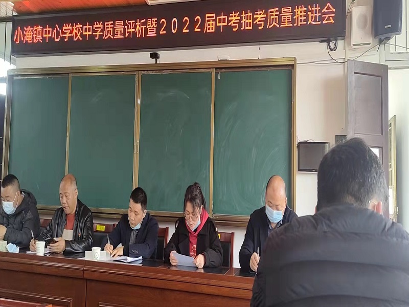本网讯 3月28日,小淹镇中学教学质量暨2022届中考抽考质量推进会在学校四楼会议室进行,会议由小淹镇中心学校校长陈斐主持。小淹镇中心校全体领导、小淹镇中学全体行政、八九年级班主任、任课教师参加此次会议。 中心校副校长罗功勋针对2021年该校中考成绩及2021年下学期期末考试成绩作质量报告。就去年中考及抽考进行了务实而高效的分析,让大家在发现问题的过程中,反思教学,寻求突破口和增长点,把脉中考。 校长李胜总结2021届中考及抽考成绩,并对本届初三年级教学工作提出了具体要求。他的讲话主要围绕着“成绩分析出出汗、分析原因比比看、立足课堂狠狠干、建立数据巧巧干”四点展开,鼓舞大家永葆超越自我、追求卓越的斗志,透彻的分析和针对性的意见让大家受益匪浅。初三年级曹娟、刘春嵘、两位老师分别就教学常规和班级管理做经验交流。 最后,陈斐高瞻远瞩,做了总结性的重要讲话。他对初三年级组勤勉严谨的工作态度给予了充分肯定。对下一阶段教育教学工作提出了针对性的指导:重视工作,明确定位,激励引导,落细落小,提优补差,不懈追求。他叮嘱大家“情寄校园、扎实工作、协同作战、再创佳绩”。此番发言讲话为下一阶段学校常规教学及毕业班教学指明了方向。