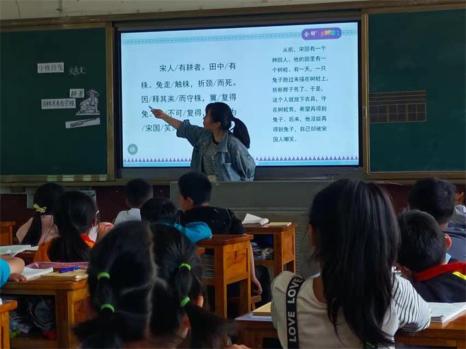 本网讯 4月11日上午,大福镇新桥完小三年级语文教师张婷上了一堂公开课《守株待兔》匠心独运、讲究教学方法,为教学比武增添了亮点。 据悉,该学校教导处在3月份掀起了青年教师教学比武活动,老师们积极参加,亮点频现,教学比武初赛快接近尾声。张婷入职教师五年,工作务实、潜心教学,本次《守株待兔》的教学展现四大亮点:一是注重朗读,课堂展现了多种形式的读,读准节奏、读出情感、读出人物的内心世界,最后达到熟读成诵;二是释义有方法,在理解“耕者”的“者”时,张婷引申到学者、智者、读者,在理解“因释其耒而守株”的“释”时,关联到“爱不释手”的释;三释理解课文有妙招,小学生初学文言文难度大,张婷化难为易,创设“古今对对碰”的教学环节,展示古文与现代文,在读到其中某句时,快速找到相对应的文句,文白轮换,并在小组内练习;四是理解寓意创情境,为更好地理解寓意,张婷设立“你会怎样去笑话耕者”的问题,进行情境教学,让学生在交流中明白是非。 教无定法但教学有法,该学校老师在课堂教学中注重教学方法、讲究实效,本轮教学比武亮点尤多。