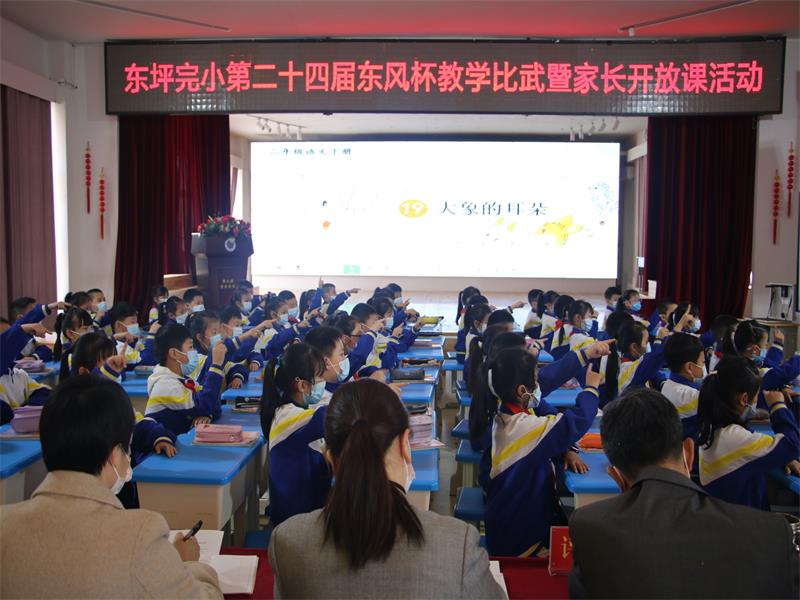 本网讯 人间四月芳菲尽,山寺桃花始盛开。在这充满期待的季节,东坪完小第二十四届“东风杯”教学比武暨家长开放课活动于4月19日—20日如期举行。因配合疫情防控,本次活动没有邀请家长和其他学校的同仁到现场观课,但该校办公室利用录播设备进行了现场直播,搭建了线上观看与交流的平台。 本次活动共有九堂比武课,两堂示范课,该校党支部书记、校长陈秀丽亲自走上三尺讲台,带领十位优秀教师一起为大家展示了精彩纷呈的教学盛宴,发挥了年轻校长的教学引领作用。课堂上,老师们借助信息技术2.0优势,发挥教学专长,各显身手,全力打造“高效”课堂,精准落实了“双减”政策;学生们认真听讲、踊跃发言、自信大方、妙语连珠,充分展示了东风学子的风采! 每学期一次的“东风杯”教学比武为该校教师提供了展示能力、寻找差距、不断提升的平台。参与示范课和比武的教师都为此做了充足的准备,从教案到课件,再到课堂的每一个环节的设计,无一不彰显着他们对教师这份职业的忠诚与热爱。参加比赛的青年教师谌欢愉感慨地说:“这次教学比武让我学到了很多,虽然承受了很大的压力,但是也给了我前进的动力,我要努力向前辈们学习,不断充实自己,让自己变得更加优秀!”(通讯员 谌学智 )