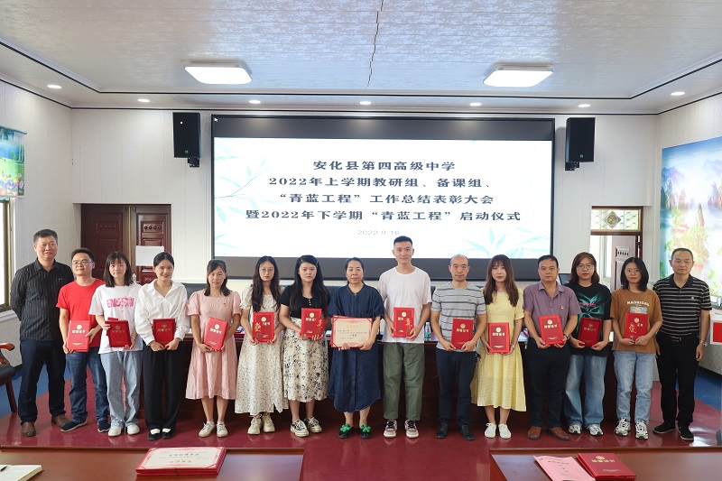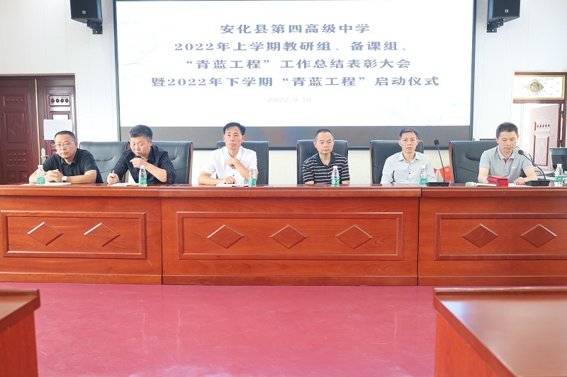 本网讯 青蓝携手育桃李,路漫修远谱华章。9月16日,安化四中隆重举行2022年上学期教研组、备课组、“青蓝工程”总结表彰大会暨2022年下学期“青蓝工程”启动仪式。全体教师与会。教务主任卢建新主持大会。