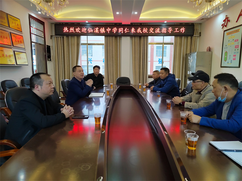 本网讯 10月9日下午,仙溪镇中学校长及该校各个部门的行政干部等一行六人来到大福镇中学,大福镇中学校长肖叔平等行政班子热烈欢迎,双方就学校管理、教学管理、德育、后勤等进行了深入的交流,大福镇中学领导班子毫无保留地介绍了自己的管理做法和经验,以最大的诚意促进双方深入的交流,携手共同进步。 仙溪镇中学行政班子及部门主任针对工作中遇到的困惑与肖叔平进行了探讨,肖叔平细致、耐心、热情且毫无保留地进行了解答。同时,肖叔平高度肯定了仙溪镇中学在教育教学、德育管理各方面的工作举措,称赞他们行政管理人员在工作中吃苦耐劳,勇于担当的精神。 下一步,大福镇中学将积极学习对方优秀办学经验,不断加强教师教育理念的更新和教学技能的提升,以勤奋刻苦、求真务实、不断创新的进取精神,扎实推进素质教育,以优异的工作成绩回报社会。
