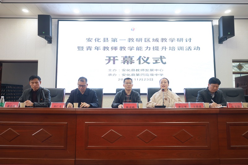 本网讯 11月23日上午,安化县2022年第一教研区域教学研讨暨青年教师教学能力提升培训活动在安化四中举行。县教师发展中心副主任陈高峰、高中部主任龙云英携各科教研员与全县省示范高中、普高、职业中专的130余名教师参与活动。开幕式由龙云英主持。 仪式上,该校党支部书记、校长黄志刚向与会领导和教师的到来表示了热烈的欢迎,并表示此次区域教研活动为县内青年教师搭建了一个展示自我、提升自我的平台,是一次宝贵的学习机会,希望全体青年教师虚心请教,不断钻研。 刘仁先校长和卢关华副校长先后强调众人拾柴火焰高,集体的智慧是无穷的。希望借此次区域教研活动增进兄弟学校之间的交流,促进青年教师教育教学能力的提升,共同助推安化教育教学质量! 陈高峰对一、二中两所学校发挥的示范引领作用表示高度赞扬,并对此次精心准备的授课教师给予了充分的肯定,同时,他还鞭策全体青年教师要珍惜来之不易的机会,积极听课,积极思考,将精彩课堂中的亮点特色选择性地与个人教学设计相融合,提升课堂质量,促进校内教育教学的改革和发展。陈高峰最后还强调,希望以区域教研为契机,不断搭建兄弟学校互助成长平台,实现资源共享和教育教学经验交流、优势互补,齐心协力,促进安化教育事业蓬勃发展! 龙云英就新入职教师的具体要求和测评方案作简要介绍。她从教学目标五大着力点、重难点的突破、教学环节的设计、教学反思的撰写、听课等方面对全体青年教师作出严格要求,希望全体青年教师扎实地备好每一堂课,根植于常态课堂,通过督评与自我学习相结合的方式促进教师群体教育教学水平的迅速提升,迎来安化高中教育事业的辉煌! 教学征途路漫漫,吾将上下而求索。此次同课异构的教研模式为县内学校提供了交流平台,全体教师通过共同探讨课堂的方式,从中领略课堂教学的不同魅力,在收获的同时也激励着他们往后刻苦钻研教学,坚定了教书育人、无私奉献的决心,做一名潜心教学的好老师!(通讯员:罗竹芽)
