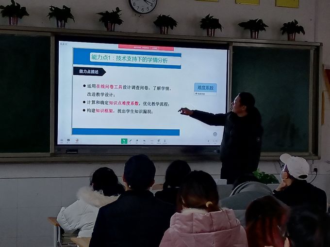 本网讯 12月7日下午4时,江南镇中学全体教师齐聚教学楼2106班教室,参加在此举行的信息技术应用能力提升工程2.0培训会。培训由该校信息技术教师黄智宏主讲。 黄智宏简要分析了信息技术应用能力提升工程2.0的重要意义和运用价值,在简单介绍登陆进入2022年安化县中小学(幼儿园)教师信息技术应用能力提升工程2.0平台学习流程后,逐一对20个能力点进行了着重解析和描述,希望老师们在完成选择的5个能力点的学习后,进行扩展学习,进一步提升自身能力和水平,为自己的教育教学服务。 此外,黄智宏还结合自己的经验,向老师们介绍了希沃白板、录制软件的下载和安装,推荐了一些学习资源平台等,供老师们参考。(通讯员 陶志远)