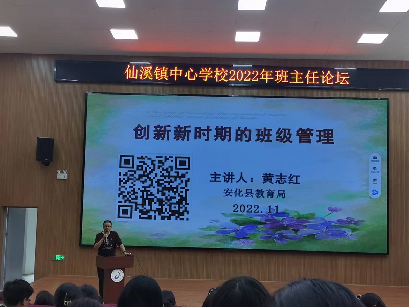 本网讯 11月11日,仙溪镇中心校在仙溪镇完小报告厅举办首届班主任论坛,中心学校全体机关干部,各学校行政管理人员、班主任和青年教师参加,县教育局基教股副股长黄志红应邀出席。 来自各校的9位班主任逐个发言,分享自己在班级工作中的经验。姚萍、吴喜民老师讲述了如培养孩子阅读习惯以及收到的成效;殷望、姚聪、张茜、涂睿昕老师分享以爱为切入点,找准学生问题所在,对症下药,动之以情、晓之以理地感化学生的故事;姚碧玉、孙清、李芳老师结合自己的日常工作,用一个个真实、鲜活的典型案例,就如何发挥班干部作用、关爱每一位学生、重视学生养成教育、培养学生优秀习惯等经验做了介绍。9位老师的发言闪耀着智慧的光芒,凝结着奋斗的心血。 黄志红给各位班主任的演讲作了精彩的点评,并带来了一堂精彩的讲座《创新时期的班级管理》,他从创建好四个团队、建立好家校互动联系卡、建立好学生成长记录袋、创设活动体验实践课程、如何来做班级管理五个方面阐述如何搞好班级建设,他幽默诙谐的谈吐、独特精妙的智慧,使在座的各位老师听得既入耳又入心。 仙溪镇中心学校总支书记、校长刘慈军进行总结,他对班主任代表所交流的经验给予了高度评价,也对各位班主任的工作成绩进行了充分的肯定,希望全镇教师要不断提升思想境界,用自己的汗水和智慧干好本职工,为仙溪教育贡献自己的力量。 本次论坛的举办,使大家对班主任工作有了更深刻的认识,进一步提高班主任的管理水平,促进了学校班级管理工作的新发展。(通讯员 周艳红)