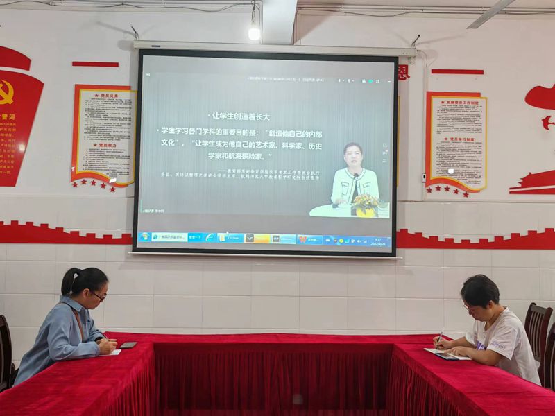 本网讯 9月26日上午9:30,在东坪镇完小教务处的组织下,科学组7位教师齐聚党建室,参加由安化县教师发展中心举办的“全县小学教师乡村教育振兴与新课程标准线上培训”。 据悉,本次培训分学科进行,第一轮培训时间为一周。该校接到上级通知后便广泛宣传、周密部署,让老师了解本次培训的重要意义,提前做好准备。为做到培训教学两不误,科学教研组组长周玲玲号召本组成员提前调换好课务,集中参加培训,线上积极交流。 2个小时的培训,老师们聚精会神看视频,听讲座,认真做笔记。活动结束时,黄灿群老师高兴地说:“这样的培训扎实有用,专家对新课程标准的解读很到位,给我很大的启发。在今后的科学课堂上,我要努力让学生‘做中学,用中学,创中学’,培养更多创新型人才。”