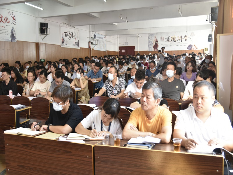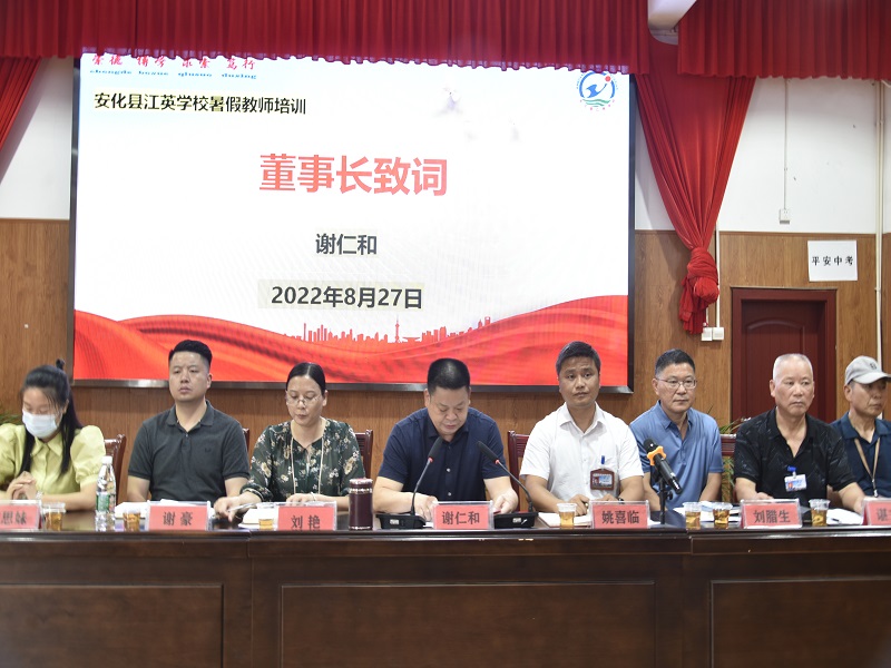 本网讯 8月27日上午9点08分,江英学校2022年暑假教师培训班暨秋季开学工作会议在该校多媒体报告厅隆重举行,学校300余名教职工按时参加学习培训。 在培训会议上,学校董事长谢仁和首先致辞,对新聘任的80多名新教师表示热烈的欢迎,同时向全体教职工指出了现阶段学校所面临的“三大挑战”,即“如何快速完成新老教师的融合、如何加强对教师的培养和管理、如何以特色立校?”高屋建瓴提出了“四个确保”的希望与要求:确保办人民满意的学校;确保学校的办学特色;确保加强教师队伍建设;确保学校的办学安全。学校督学谌安云代表董事会宣读了人事任免文件。校长姚喜临作了新学期工作报告,盘点了上学年工作成绩之后,对学校工作提出了“唯有不断改革,方能持续发展;唯有找准时机,趁势而为,方能披荆斩棘;唯有心存敬畏,方能行之高远”的三点思考。明确了工作任务与措施:即聚焦一条主线:师资队伍建设;锚定三个目标:质量领先、管理创优、安全零事故;坚持五个强化:党建引领、师德师风、教研教改、常规检测、后勤服务;打造七大特色:书香校园、艺体特色、劳动教育、校园电视台、社团文化、心理健康教育示范校、文明礼仪。并把“9· 20”定为学校留守儿童关爱节。 培训活动安排紧凑,内容丰富。在下午的培训会议上,分别有党建工作培训、师德师风培训、安全工作培训、政治业务学习等。领导们的讲座重点突出,且各具特色。尤其是刘艳副校长作的师德师风培训,她以《喜迎二十大,筑梦新时代》为题,由视频“人民解放军台海军事演习”热点导入,引出国家的安全感、教育的责任感,顺理成章的讲到“师德六条”、新时代的“四有好老师”;从聚焦课程改革,讲到怎样从老子的《道德经》中汲取教育的智慧;再讲到王阳明、陶行知的知行合一,全国优秀教师的楷模张桂梅的优秀事迹,最后讲到优秀教师的“四度”(气度、深度、风度、温度),给老师们上了生动的一课。 据悉,该校明天的培训还有更为精彩的专家讲座,由湖南省特级教师、现任江英学校业务副校长姚建民教授主讲,老师们无不充满期待。(通讯员 王光明 刘圣彦)