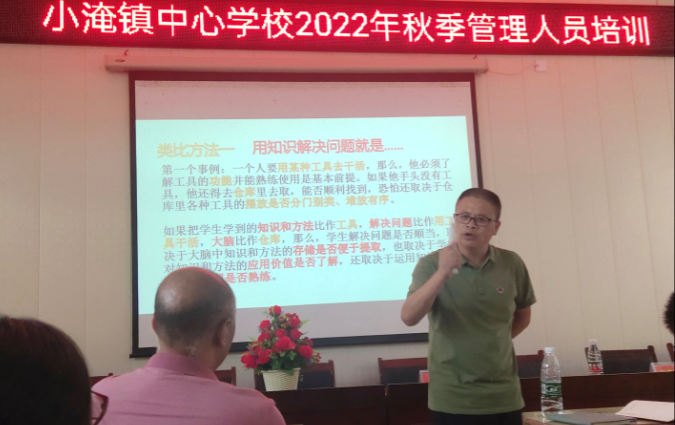 本网讯 8月26日下午,小淹镇中心学校秋季管理人员培训在小淹镇完小多媒体教室举行。安化县教育局基教股副股长黄志红、小淹镇三校一园的全体行政、教研组长、备课组长等参加了此次培训。中心学校教学副校长罗功勋主持活动。 会上,黄志红作了《学校教育教学管理思考与策略》专题讲座,他认为要深化管理,专业要更新;方法要先行。围绕五个方面展开:理解管理的含义,管理者核心能力六项修炼,培植“亲文化”校园,熟知“新课程方案”,教育的思维与方法。指出:“作为人师的我们要在教育教学实践中给我们的学生们文化的光亮、课堂的光亮、课程的光亮,要用我们的责任、情怀、智慧、思想、梦想去唤醒和影响我们的学生们一生,做我们学生生命中的贵人。”罗功勋对本次培训做了精彩的点评和总结。 路漫漫其修远兮,吾将上下而求索,夏日炎炎,但丝毫没影响大家的学习热情。这次培训学习,将成为所有参会人员教育人生中一笔宝贵的精神财富,在今后的管理与教育教学实践中,会好好利用这笔资源,永葆自己的管理与教育教学激情,努力提高自身的管理能力与教育教学研究水平。 (通讯员 刘竞花)