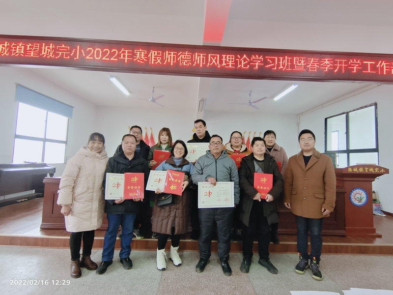 本网讯 为切实加强教师队伍师德师风建设,努力培养党和人民满意的“有理想信念、有道德情操、有扎实学识、有仁爱之心”的好老师,根据教育部《关于建立健全中小学师德建设长效机制的意见》和省市县镇教育工作会议精神,针对当前疫情形势,结合学校实际,梅城镇望城完小于2月14日开始,举办了为期三天的寒假师德师风理论学习班,学习形式为集中学习、网络学习、小组讨论、个人自学等相结合。 学习班上,该校校长李兴家作了题为《夯实常规 顺势而为 携手共建精品望城教育品牌》的学校工作报告,副校长郭世佳作了师德师风建设专题辅导报告;政教主任吴琪琦对2022年春季开学安全工作暨疫情防控工作进行了安排;教务主任董鸿亮作《望城完小2021年下学期期末考试质量分析报告》,总务主任龚轶平作了后勤财务工作报告,培训活动由办公室主任李咏如主持,中心学校联点领导胡赛华同志作了重要讲话,她与全体望城教育人交流了坚定一个信念、树立三种意识、恪守三条底线、突出四项重点工作。最后,向乡村学校从教20年的教师颁发了荣誉证书。 本次学习中,学校还与每位教师签订了师德师风、安全工作、人口与计划生育、保学控流、疫情防控、双减、拒绝酒驾等多个责任状,进校时老师们人人填写身体健康状况登记表、出示湖南省居民健康卡绿码电子卡。老师们出勤率高,会风好,参加学习的全体同志学习认真并且上交了心得体会,收到了良好效果,达到了预期效果。(通讯员 李咏如)
