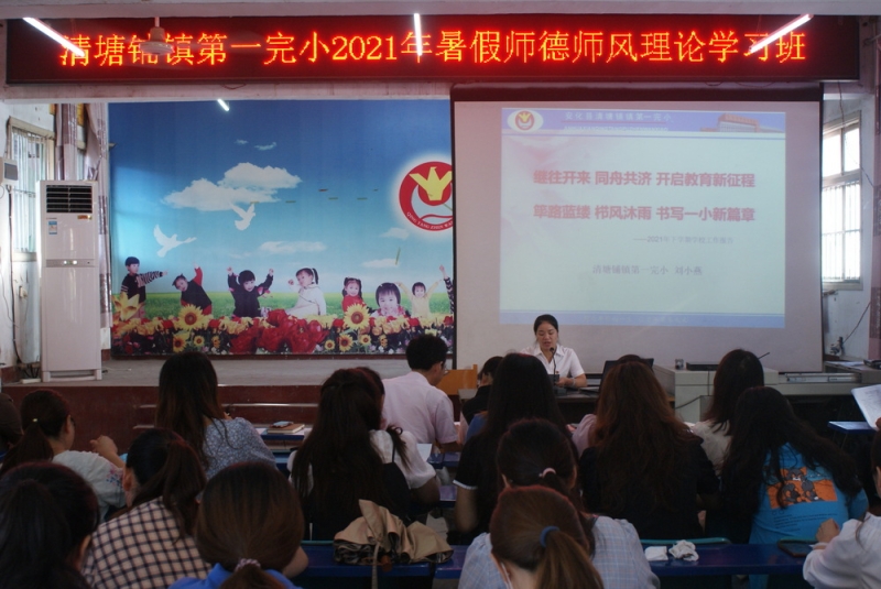 本网讯 8月28至8月30日,清塘铺镇第一完小全体教职员工进行暑假师德师风理论班的学习,组织严谨,求真务实,收到实效。 该校编印了《2021年暑假教师师德师风理论学习资料汇编》,由校长室、工会、教导处分别主持认真学习中央、省、市、县有关文件精神与法律法规,内容包括党建工作、行风建设、师德师风、队伍建设、纪检监察、安全工作、教学质量、规范收费、规范办学行为、课堂教学改革、课后服务等。教导主任蒋飞艳以《新起点、新挑战、提升质量孕育新希望;新局面、新征程、求真务实谋求新发展》为题进行了上学期教育教学质量分析,通报了上学期常规工作检查情况。副支书曹泰友作了题为《学党史、铭初心、铸师魂,着力加强师德师风建设》的专题报告,全体教师在校长刘小燕的带领下高举右手进行庄严宣誓,重温教师誓词。 该校在认真搞好理论学习的同时,还对2021年秋季开学工作进行了具体而周密的部署。听取了校长刘小燕所作的题为《继往开来,同舟共济,开启教育新征程;筚路蓝缕,栉风沐雨,书写一小新篇章》的学校工作报告。报告重点围绕党建引领、队伍建设、安全工作、德育工作、教学工作、幼教工作、后勤工作、群团室工作、课后服务工作与常态化疫情防控等方面进行了全面部署与安排,明确了新的目标,提出了具体要求。该镇中心学校领导罗沧海亲临学习班现场,作了指导性讲话。 该校在扎扎实实办好暑假理论学习班的同时,组织全体教职工进行了疫情常态化防控演练,同时全面搞好了开学的各项准备工作,以优雅整洁的环境与昂扬奋发的新姿迎接新学期的到来。(通讯员