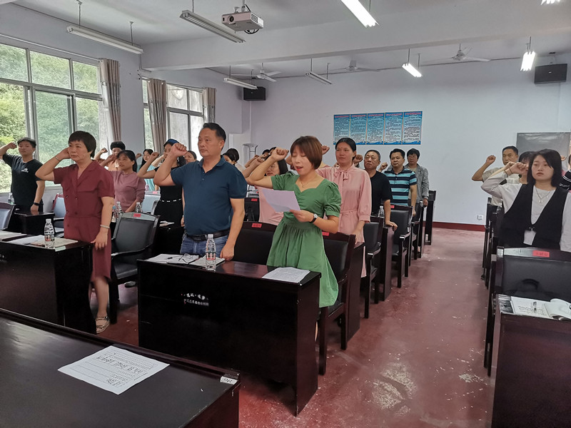 本网讯 8月28日—30日,柘溪镇完小在四楼会议室召开了2021年秋季教师暑假学习班暨师德师风建设专题会议。本次学习班由该校办公室主任王献安主持。 该校校长邓美婷做了题为《且行且思•争做四有好老师》的师德师风专题辅导报告。副校长邓超珍组织大家认真学习了中共中央办公厅 国务院办公厅《关于进一步减轻义务教育阶段学生作业负担和校外培训负担的意见》和教育部《中小学教育惩戒规则(试行)》及“五项管理”(指手机、睡眠、读物、作业和体质管理)等相关文件,通过集中学习和个人自学等方式加深了对学习内容的理解,全面掌握新形势下师德师风建设新要求,号召全体教师积极争做“四有好老师”和学生的“四个引路人”争做教育的老黄牛、拓荒牛、孺子牛。 会中,教务主任邓冠兰、政教主任张建平和总务主任邓飞跃在会上作了重要讲话。全体教师在邓美婷的带领下重温与宣读了《益阳市教师誓词》。 会后,全体教师签订了《柘溪镇完小“树师德·提师能·铸师魂”师德师风建设责任状》和《规范师德师风行为承诺书》,通过几天的学习,老师们觉得受益匪浅,收获剖多!(通讯员 王献安)