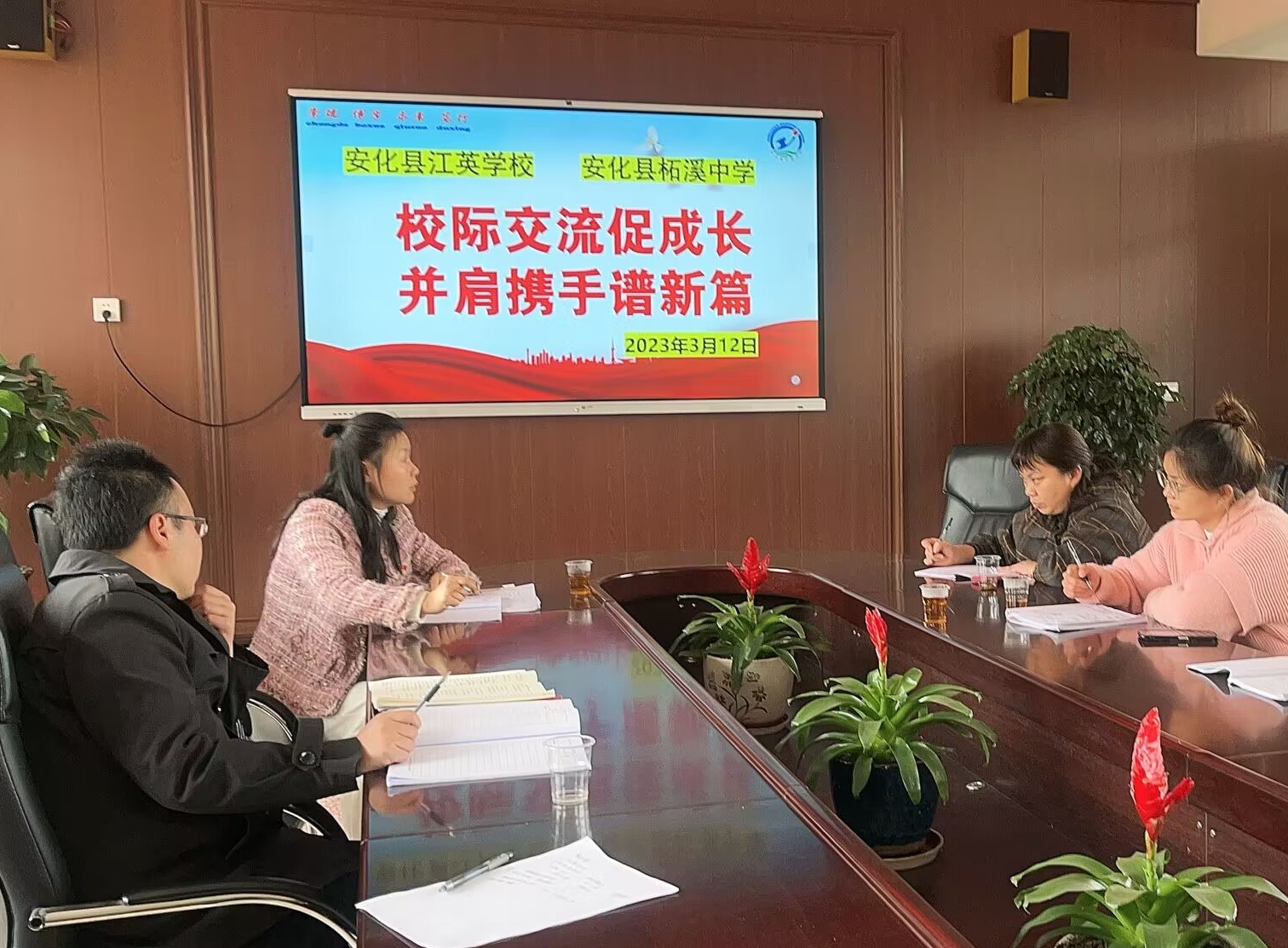 本网讯 3月12日上午,安化县柘溪中学十多名老师到安化县江英学校初中部,以“校际交流促成长,并肩携手谱新篇”为题,开展了两校为期一天的校际交流活动。 本次活动,有语文、数学、英语等十多门学科,采取随堂听课的办法,分科进入各个班级进行相互学习,相互交流,得出小结。其中,在语文教学上,一是要培养良好的学习习惯;二是要做好每次测试分析;三是要利用日记训练学生写作;四是要对学困生,成立“一对一”的帮困。在数学教学上,一是要重视计算的训练、按常态化来抓计算专题;二是要重视综合作业的布置;三是要重视培优转困;四是要落实作业检查。在英语教学上,一是要分工明确;二是要将作业布置分为抄写、听写和综合作业。同时,两校还就“双减”“五育”、新课程标准、教育教学、常规管理、安全管理和卫生管理等各项管理工作进行了相互间的经验介绍和交流。 两校教师表示:今后要进一步加强两校的校际合作交流,务实开展互访互学活动,互相借鉴,共同发展,共谱新篇。