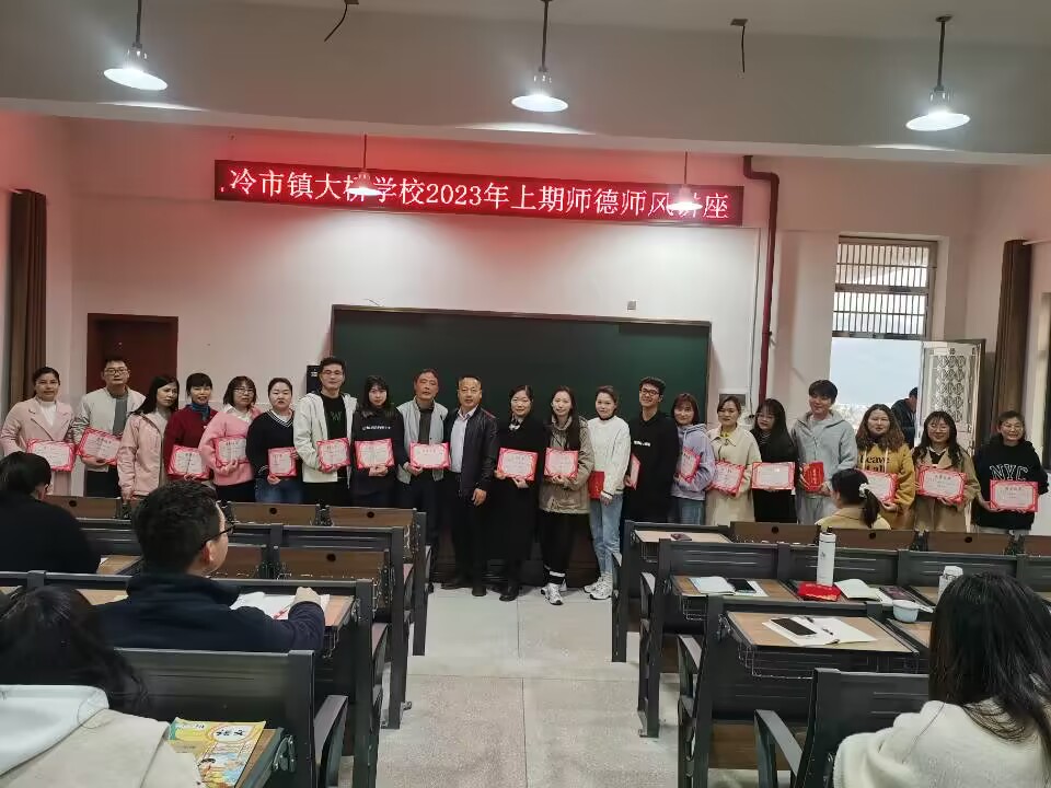 本网讯 3月15日晚,冷市镇大桥学校组织全体教师召开师德师风建设专题会议,着力解决师德师风建设中的薄弱环节和突出问题。 会上,小结了春季开学以来师德师风建设工作的亮点和典型事例,深入剖析了教师中职业道德、教育教学工作中存在的不足与缺失。 该校校长黄军主讲了题为“做新时代传道授业解惑的引路人”辅导报告。从讲政治、讲修养、讲素质三个层面。要求全体教师做到爱国守法、爱岗敬业、为人师表、教书育人、关爱学生、终身学习。用心用情奉献教育,服务学生,做学生健康成长的筑梦人、系扣人、引路人。通过身边鲜活案例,阐释如何做有理想信念、有道德情操、有扎实学识、有仁爱之心的四有好老师。作风建设要从我做起,从身边的小事做起,对待工作要敢于担当,珍惜缘分,珍惜手中这份平凡而伟大的工作。话语情真意切,象一面镜子,触动了每个教师的灵魂深处。 教师纷纷自我反思并表示:对照新时代教师标准要求,自觉照镜子,找差距,为人师表,履职尽责,展示乡村教师良好精神风貌,不负新时代使命担当。 会上,表彰了一批爱岗敬业教育教学成绩突出的教师。