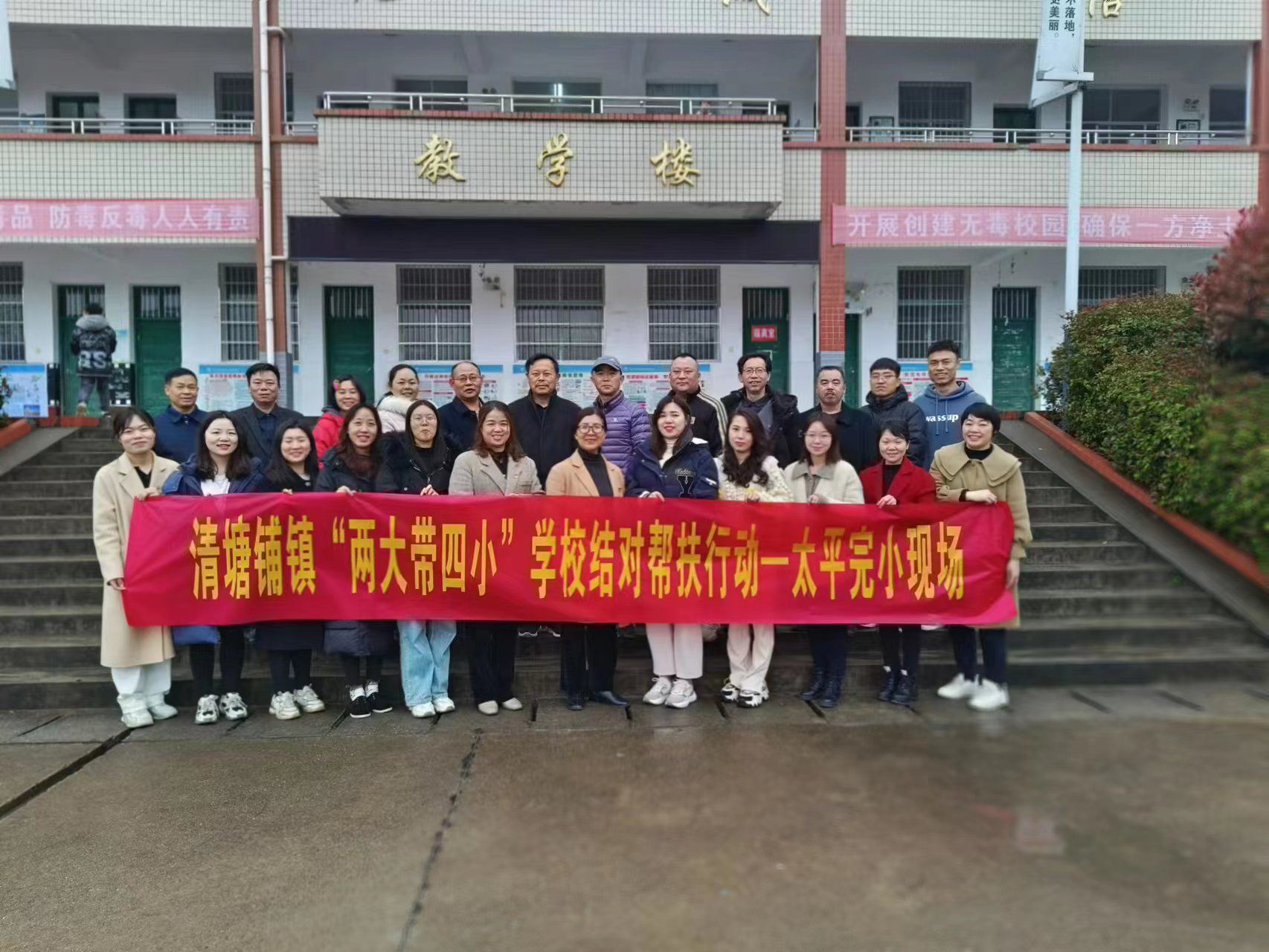 本网讯 3月30日,清塘铺镇中心学校和清塘铺镇第一完小各领导携骨干教师一行10余人,到清塘铺镇太平完小开展教学视导及“两大带四小”学校结对帮扶教研活动。 清塘铺镇中心学校各位领导及兄弟学校的老师走进课堂,听了六年级语文、数学、科学课各一节,了解教学情况后分别对相应学科做出了详细点评,并提出了很多实用的建议。同时,兄弟学校的周建琅老师也给太平完小带来了一堂精彩的道德与法治示范课。 中心校副校长喻拥军对太平完小各位老师的常规工作做出了充分的肯定与评价,并提出了相应的要求。中心校校长夏益武为本次“两大带四小”教研活动做出了重要指示。第一完小校长刘小燕和太平完小校长阙标彪在会议上表达了“资源共享,荣辱与共”的决心。
