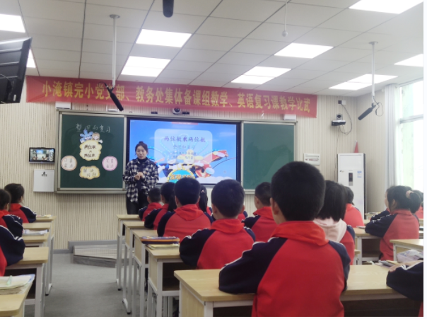 本网讯 5月11日上午,小淹镇完小在云录播室举行集体备课组数学、英语复习课教学比武。 复习课建模,是本校期初提出的设想。此次活动邀请了中心校教学副校长罗功勋以及本校校长李志新等担任评委,七个集体备课组参与,凝心聚力推选、集体讨论、磨课。在比赛中,老师们或展示精美课件,或切换展台,或播放音乐、录播,亦或在课件上标注重点,学生自由作答,游戏,倒计时均能灵活运用,让西沃白板最大限度地为自己的课堂服务,提高其课堂效率。此外,跨学科学习让学生学得轻松、刺激,优美的板书,学生得到了艺术的熏陶。 来自三年级组的教者贺思佳,创设了“王国旅游”的大情境,让学生扮演“酷乐”,宣布游戏规则,小组长领取入场券,解锁游乐项目,在游戏中快乐地整理和复习了“二位数乘二位数”。来自英语组的教者刘温柔,创设了北京冬奥金牌获得者谷爱凌要来小淹,让学生当向导,结合单元复习与本地的宾馆、银行、学校、街道操练单词,句型,突破问路的难点,激发了学生学英语的兴趣,课堂洋溢着欢笑。