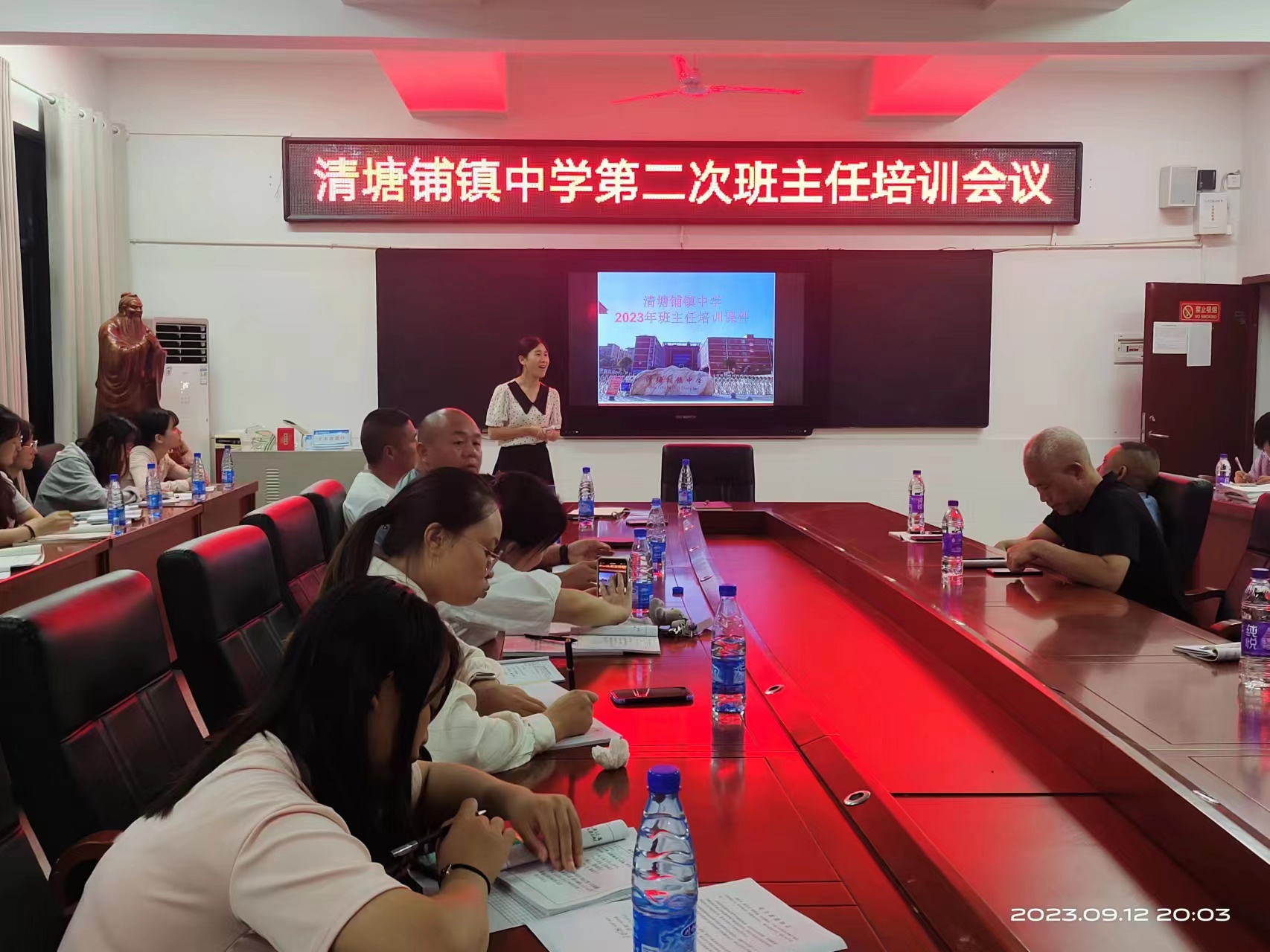 本网讯 9月13日晚,清塘铺镇中学在小会议室举行了第二次班主任培训会议,旨在提高班主任班级管理技能。会议由政教处副主任吴丹主持。学校行政及各处室干事、团委书记、全体班主任参加。 会上,政教处主任刘轩尚就改善师生关系、家校关系以及如何让班主任工作顺畅开展这三方面进行了深入的分析与交流,同时强调:作为班主任应调整好心态,明确班级奋斗目标,坚持以德树人、以人为本,做一位智慧的班主任。 有着丰富教学与班主任管理经验的黄晓云老师分享自己当班主任的感悟,将班主任定位为班级总设计师、学生的“人生导师”、学业引路人、道德的感召者以及充满人格魅力的智者,从爱心、真诚、智慧、爱岗敬业、潜心育人讲述如何成为一名优秀的班主任。年轻有干劲的肖卉老师分享了班级管理小妙招,以小组建设的力量来凝心聚力,从每日常规、每周评比等举措来落实班级事务,真正做到以心育人。 政教处干事袁擎勋强调班主任务必把安全工作抓实抓细,牢固树立安全第一的理念,要坚持不懈地抓好防电信诈骗、防溺水、防校园欺凌、防性侵、交通安全等安全教育,落实每周的安全教育主题课,维护学生安全。 最后,吴丹补充发言,他希望全体班主任通过此次培训,蓄力待发新征程,提升教育的张力,团结一致,用心、用爱、用新举措,谱写新篇章!