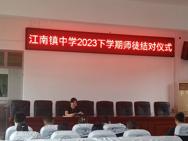 本网讯 9月20日,江南镇中学在多媒体教室举行师徒结对仪式。仪式由副校长陶佳红主持,教导处主任周玉和15对师徒参加。