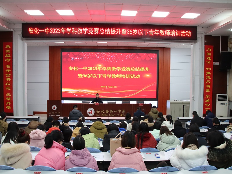 本网讯 12月16日晚,安化一中“学科教学竞赛总结提升会暨青年教师培训活动”在培英楼多功能报告厅举行。教学块口行政人员、教学竞赛所有参赛教师、36岁以下青年教师参加活动。 党委书记、校长聂可相表示,在安化县2023-2025年课堂教学劳动竞赛中,学校语文、数学、地理三科参赛教师展现了良好的精神风貌和过硬的专业素养,取得了优异成绩,希望青年教师们能坚守教育情怀,坚持做“四有”好教师,积极开展教学研究,努力提升课堂艺术水;在平时多学习,用健康的生活方式提升生活品质;在工作中多磨炼,在教学中不断完善自我。 活动由学校党委委员、副校长曹迎新主持。 教科办公室副主任彭佑谋作《“三主”“五环节”在教学竞赛中的体现》主题讲座。他结合本次竞赛课例,强调以问题为导向,以学生为主体,以教师为主导的“三主”课堂以及创设情境(有生活)、问题导向(有思考),任务驱动(有探究),内化提升(有拓展),创新应用(有实效)“五环节教学”在新高考背景中的重要作用,并勉励青年教师积极进行课后反思,及时总结经验教训,让自己不断成长。 安化县2023-2025年课堂教学劳动竞赛语文、数学、地理三科比赛特等奖获得者张叶青、谢紫纯、刘菊梅依次上台分享教学竞赛经验。他们表示,成绩的取得离不开一中大家庭的支持,离不开团队的精诚合作,这份荣誉既是终点也是起点,他们将以本次比赛为新的契机,继续深入研究提高课堂效率的方法和途径,为学校的高质量发展贡献力量。 “感谢学校提供了这样一个交流的平台,听了大家的发言,深受启发,一分耕耘,一分收获,在以后的教学中,真的要好好深耕自己的课堂,让自己快点成长起来。”青年教师杨珊珊表示。(通讯员 夏君 侯文静)