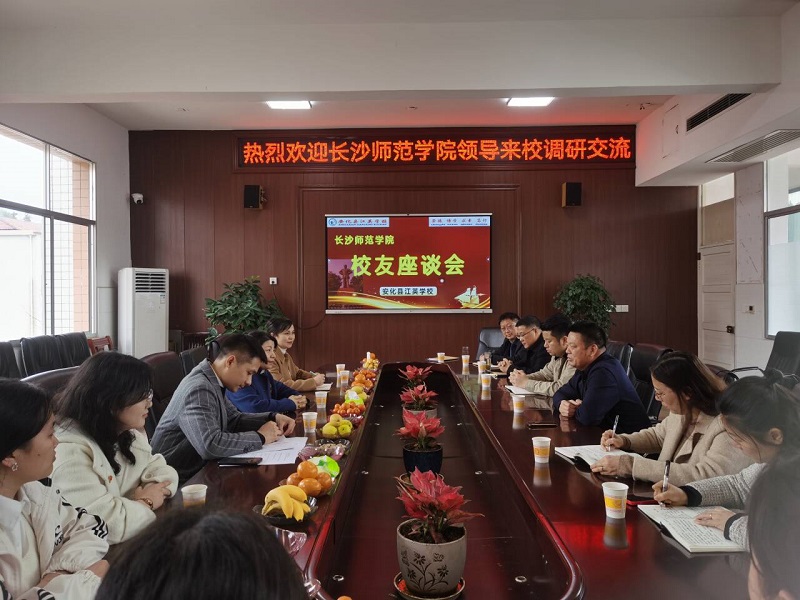 本网讯 3月21日,长沙师范学院到江英学校开展调研交流工作,双方在教学楼五楼会议室举行座谈,江英学校董事长谢仁和、校长谢豪等领导参加。 谢仁和对长沙师范学院一行莅临江英学校指导工作表示热烈欢迎,谢豪介绍了学校的基本情况和办学特色,阐述了学校2024年的工作思路,分享了学校历年以来在教育教学、日常管理、安全管理、文化建设和关爱工作等方面的工作情况和所取得的成绩情况。 长沙师范学院对江英学校的热情接待表示由衷的感谢,详细介绍了长沙师范学院在专业建设、学生养成、队伍管理等方面的情况,希望今后双方能够在人才培养、队伍建设等方面开展更加深入的交流与合作。 会后,双方校友们又聚集在一起,召开“校友座谈会”,将调研交流工作又推向了一个新的高度。