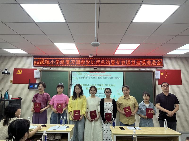 本网讯 5月17日,烟溪镇中心学校在烟溪镇完小开展烟溪镇小学组复习课教学比武总结暨有效课堂建模推进会议。会议由中心学校办公室主任刘开颜主持,烟溪镇中心学校校长胡毅、副校长刘娟、教导主任刘小军及各小学校长、小学毕业学科教师80余人参加。 会上,刘小军对小学毕业学科复习课教学比武进行了总结发言,他从教学准备、教学方法与手段、新课程理念运用、教学效果等四个方面对参赛教师好的做法予以了充分肯定;同时要求教师上复习课要做到以学生为主体、复习以课本为主、知识点尽量在课内完成、课堂做到精练、重视学生能力发展等切实减轻学生学业负担,提升复习效果,从而提高教育教学质量。 胡毅凭借丰富的教学经验和深厚的学科素养,将复杂、抽象的“复习课流程”巧妙地融入具体的物理课教学《浮力》中,通过具体课堂情境,让全体教师又重回少年读书时期,幽默、风趣的话语,轻松、愉快的课堂,让全体教师在不知不觉中深入理解和掌握了“复习课流程”的核心。让在座的每一位教师听得意犹未尽。他强调全体教师要理论联系实际,注重培养学生的自主学习能力和科学探究精神,“发展学生,解放自己”,全面落实新课程标准“以学生为主体,以问题为导向”的教学理念,达到“双减”目标。 会议还对此次教学比武活动中获得优秀的教师进行了表彰鼓励。