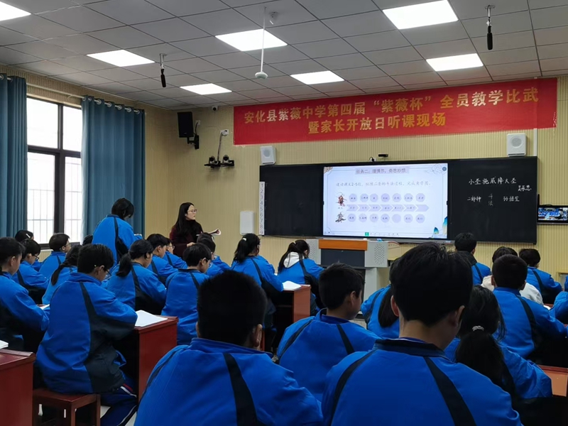 本网讯 12月4日至6日,安化县紫薇中学举行为期3天的第四届“紫薇杯”全员教学比武暨家长开放日活动。 本次教学比武分为初赛和决赛。各教研组在前期进行初赛,每位教师根据教学进度,确立了教学内容,钻研新课程标准,用心设计教学,为活动有效开展做了精心的准备。经过组内评比,推出语文、数学、英语、物理、道法、历史、生物、地理、化学、音乐共计10堂课进入决赛。 决赛上,老师们教学方法灵活多样,积极探索,大胆尝试,课堂精彩纷呈,亮点多多。“老师,我来、我来……”在老师的引领下,同学们积极思考,勇于举手,在小组合作下共同学习,落实“以学生为主体”的教育思想。同时,学校邀请了家长前来观摩交流,他们用心倾听,认真记录,对各位老师的课堂给予了高度评价。经过激烈的角逐,本次决赛共评选出一等奖5人,二等奖 5人。 “贺老师的物理课堂紧贴生活实际,趣味十足,我都能听懂!相信孩子们在这些优秀老师的带领下,一定会越来越好!”2307班谌同学的家长如是说。据悉,紫薇中学一直以来坚持家校共育,努力创设和谐的育人环境,为培养全面发展的学生不懈奋斗。 初审初校:胡 双 复审复校:李华集 终审终校:黄 剑