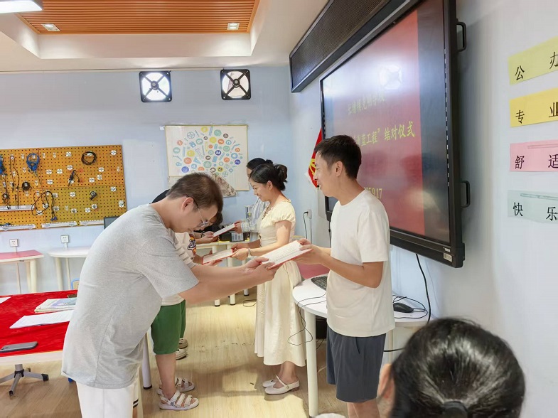 本网讯,9月17日,长塘镇克明学校举行“青蓝工程”师徒结对仪式。 仪式由教务主任陈岚主持,在热烈的掌声中拉开序幕。首先,主持人宣读了本次“青蓝工程”师徒结对名单,明确了各位青年教师的指导老师,为后续的帮扶成长之路奠定了坚实基础。随后,仪式进入庄重的拜师环节。青年教师怀着敬意,依次向各自的指导教师呈上拜师贴,以最诚挚的方式表达了对师傅的尊重与求教的决心。与此同时,指导教师们也向青年教师回赠了精心挑选的教育类书籍,希望青年教师能在书籍中汲取养分,在教育之路上不断探索,早日脱颖而出。 拜师礼后,青年教师代表姚逸兴与指导教师代表何梅先后发言。青年教师代表表态,将珍惜此次学习机会,虚心向师傅请教,认真钻研教学业务,不负学校与师傅的期望。指导教师代表则承诺,将以身作则,毫无保留地分享教育教学经验与心得,在教学、教研等方面给予青年教师全方位指导,助力其快速成长。 发言结束后,在全场的见证下,结对师徒共同签订了“青蓝工程”师徒结对协议。一纸协议,不仅是一份承诺,更是一份沉甸甸的责任,标志着双方正式建立起师徒关系,开启了携手共进的新篇章。仪式最后,该校校长蒋喜良发表讲话并合影留恋。 学校负责人表示,此次“青蓝工程”师徒结对仪式,为该校教师搭建了交流学习的平台,不仅是对学校优良教育传统的传承,更激发了全体教师的教学热情与责任感。相信在“青蓝携手”的良好氛围下,该校青年教师定能茁壮成长,与指导教师一同书写学校教育事业的辉煌未来。 初审初校:陈 岚 复审复校:姚妙峰 终审终校:蒋喜良