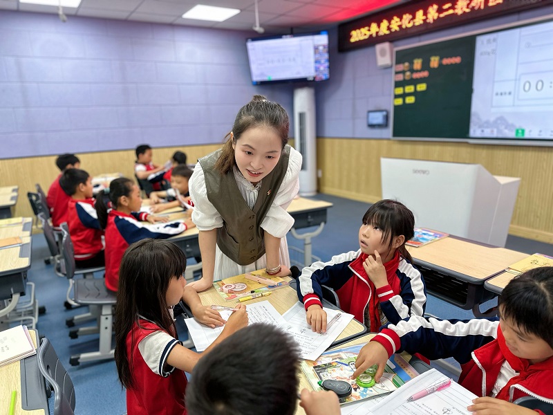本网讯 9月28日,2025年度安化县第二教研区"一堂好课"数学竞赛暨教学技能培训活动在乐安镇完小云录播室举行。通过"竞赛展示+专家点评+技能培训"三维模式,为小学数学教学创新注入新动能。 上午8时30分,活动在严谨有序的签到流程中拉开帷幕。首场教学竞赛即呈现高水准对决:高明铺完小张欣意老师以《数字编码》为载体,通过"身份证解码"情境任务,引导学生经历观察-猜想-验证的全过程;梅城芙蓉学校李秀慧老师和清塘一小吴旭红老师同课异构《曹冲称象的故事》,前者巧妙构建数学模型,打开学生们的数学思维;后者则创新使用天平教具,将抽象的等量代换转化为可视化操作;乐安镇思游完小谢丽姿老师带来的《"度"说古今》,通过"时间度量史"主题探究,展现数学文化的深厚底蕴。每节展示课后设置的8分钟说课环节,成为思维碰撞的第二个高潮。 经过激烈的角逐,李秀慧老师摘得桂冠,此次活动通过搭建"课例打磨-专家把脉-资源辐射"的成长生态系统,为打造“双减”背景下的高效数学课堂提供了可复制的实践范本,为全县基础教育优质均衡发展注入持久动力。 初审初校:陈婷婷 复审复校:李著 终审终校:罗毅