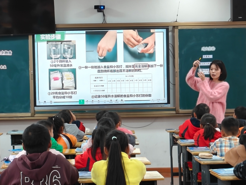 本网讯 10月30日,东坪镇中砥完小第七届教学比武大赛落下帷幕。综合组共4名教师参与此次教学竞赛,安化县第一芙蓉学校以及城郊六校优秀教师团队参与此次活动。 课堂展示环节,四位教师将学科特色与创新理念深度融合。 刘亚芳老师的英语课《Is this your pen?》,以生活场景为切入点,通过“实物辨认+AI情境对话”的形式,引导学生用英语交流物品归属,同时引入击鼓传花游戏,充分调动了学生积极性。胡静老师的科学课《水能溶解多少物质》,聚焦探究核心,组织学生分组实验,让学生在实践中直观感受,盐和小苏打在常温水中的溶解能力的差异。谌俊奇老师的科学课《运动与摩擦力》,以生活中的摩擦力现象进行导入,通过后续分组小车实验,让学生感受到滑动摩擦力与滚动摩擦力的差异,将抽象知识具象化。蒋艳妮老师的《武术健身操复习课》,注重分解纠错,帮助学生巩固动作要领,展现了武术健身操的刚健之美。 赛后评课环节,所有评课教师齐聚党员活动室,围绕“教学目标达成”、“学生主体地位”等问题展开深入探讨。中砥完小教导主任游洁表示,此次教学比武大赛不仅为学校教师搭建了自我展示的平台,更推动了综合组教师教学能力的稳步提升。 中砥完小党支部书记李建新强调,教师在课堂教学中要积极引用人工智能技术,做到AI赋能教学,提升课堂教学质量。同时,他指出,学校将始终以教学比武为有力抓手,通过“青蓝工程”“跨校联研”等机制,推动教师队伍梯度化发展。 初审初校:张纯阳 复审复校:游 洁 终审终校:李建新
