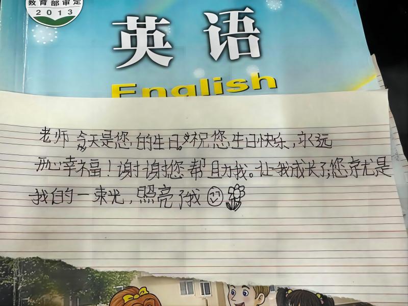 温暖我的瞬间:一束光 羊角塘镇文昌阁学校英语教师:蔡景 忙碌的周二终于在最后一节课的打铃声中结束了,连续上了一下午课的我拖着疲惫的身体往住的地方走去。出租屋离学校不太远,但此刻的我却觉得有十万八千里。熙熙攘攘的学生,我的步伐也慢慢放缓,“老师再见!”一个稚嫩的男声朝我这边传来,我朝这个声音望去,他正朝我笑着,噢!原来是小邓啊。我立马笑着回应他:“小邓同学,再见呀!回家路上注意安全。”他疯狂地点点头,然后蹦蹦跳跳慢慢地远离了我的视线。我继续朝出租屋走去,心想:小邓同学今天看起来好开心呢,上我的英语课也积极回答问题,虽然在那件事之后他就在我的课堂上十分积极,但是今天格外兴奋。 回到房间,我立马坐到了书桌边上休息。突然瞟到了一张小纸条,已经工工整整折好了,夹在我的英语课本里。我顿时明白了应该是别人趁我不注意偷偷塞进我书里的。我打开纸条,是学生作业本撕下的一张纸,所以应该是学生写的。黑色圆珠笔的一行字虽然说不上好看,但也能看出来是认认真真写的。我轻声地读出来:“老师,今天是您的生日,祝您生日快乐,永远开心幸福!谢谢您帮助我,让我成长了,您就是我的一束光,照亮了我”。后面还画了几个可爱的小表情。 原来是小邓同学给我的小纸条,难怪他今天这么兴奋。原来今天是我的生日,上班忙得我连自己的生日都忘记了。小邓同学居然还记得,当时教这个班的第一节课,我就是为了给学生们教英语语法,顺嘴提了下自己的生日,没想到这么久了他还记得。我站在窗边,望着窗外的风景,仿佛眼前一个小男孩小心翼翼地把纸条夹在我的课本里,便匆匆地跑开了,竟然让我毫无察觉。我回想起纸条上的话,眼眶顿时湿润了,不争气的眼泪掉了下来,可是我的心里却充满了幸福与感动。 小邓同学是我所教的学生中很特别的存在。他的家庭情况有些复杂,父母在他读一年级的时候离婚了,他一直跟着父亲生活,但是他父亲工作忙,他们俩平时相处时间很少,所以几乎都是爷爷奶奶照顾小邓同学。但是小邓同学特别懂事,在校期间也不顽皮,相比同龄人要成熟很多。在我教这个班之后,我发现他沉默寡言,上课不积极,下课也不和同学一起玩,成绩也比较糟糕。所以我找他谈了心,以一个朋友的身份去走进他的内心。另外也和他的父亲去积极沟通,经过一段时间,我发现小邓同学越来越开朗了,在课堂上也活跃起来了,成绩也在稳定提高。我为他的改变感到高兴,他说他也很惊讶自己现在的改变,但是他十分喜欢现在的自己。 小邓同学说我是他的一束光,但是,我也想告诉他的是,他也是照亮我人生的一束光,尽自己的微薄之力去帮助我的学生,看到他们越来越好,我也就会越来越好。