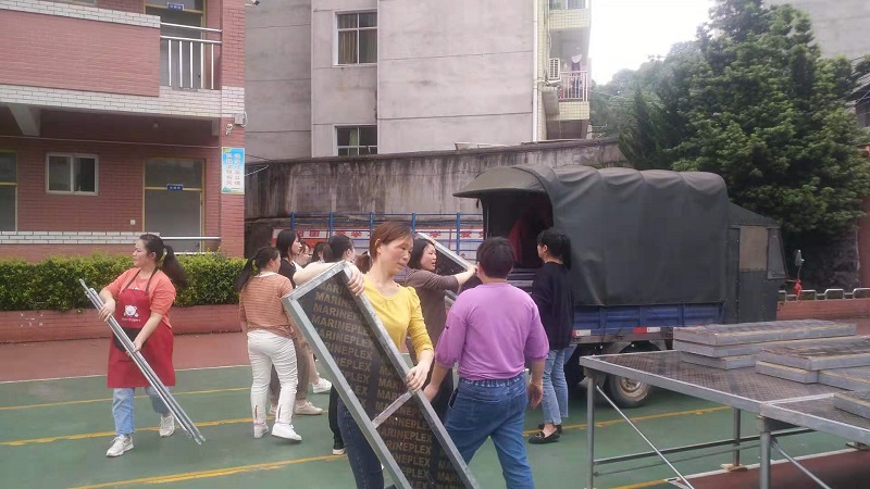 本网讯 为了让孩子度过一个快乐、丰富、有意义的六一儿童节,5月25日,一群可亲可敬的家长来到泥埠桥完小,为孩子们搭建六一舞台。舞台建材送达学校后,家长们便自行分工合作,有的负责搭建舞台支架,有的负责铺平台框,有的负责调整各板块位置,家长们忙碌的身影成为了校园里一道靓丽的风景线,也给孩子们送来了一丝夏日里的凉意。据悉近段时间,常常有热心家长来到学校,帮助孩子们排练节目,为“六一”的精彩演出贡献自己的一份力量。(通讯员 卢洁)