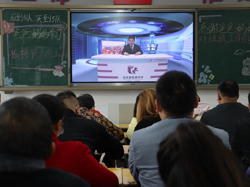 本网讯 凛冽寒冬悄然而至,家校携手温暖如斯。11月18日,安化县紫薇中学开展了课堂教学家长开放日暨家长会活动。该校七、八年级1000多名家长应邀参加,真正零距离体验孩子们每天在学校的学习生活。此次活动旨在充分展示紫薇中学良好的校园风貌、先进的教学管理模式和教师教育教学风采;搭建家校沟通的桥梁,形成家校共同教育合力。 上午9时许,各班邀请的部分家长代表进入校园,在班主任和跟班教师的热情接待下,走进教室,与孩子们一起上课,亲身融入到课堂里,零距离体验教学情境,体会孩子们在学校的学习环境,了解老师的教学水平,感受教学氛围。教师们扎实的教学功底、清晰的教学思路、对学生的关注以及热烈的学习氛围得到了家长们的一致认可和好评,他们纷纷写下听课感受,和老师积极沟通。 课后,所有学生家长分班进入教室,该校党支部书记、校长曹文武通过校园电视台进行直播讲话。他从师资队伍、育人理念、教师教研、特色发展等方面对学校进行全方位介绍,并就“如何实现有效的家校合作”与家长们进行深入探讨。他表示,要充分认识家庭教育的重要性,细心感受孩子成长的复杂性,真正发挥家校沟通的有效性,努力实现相互配合的全面性;家长和学校要彼此信任、加强沟通、相互理解、互相支持,共同呵护孩子健康成长! 该校德育副校长李华集也通过直播方式进行家长培训,主要就家庭教育的思想与策略与家长们进行交流和分享。他认为,家长要培养孩子良好的习惯,营造温馨的家庭教育氛围,善于与孩子沟通交流,尤其要关注孩子安全,真正将孩子的健康成长落到实处。(通讯员 李晴)
