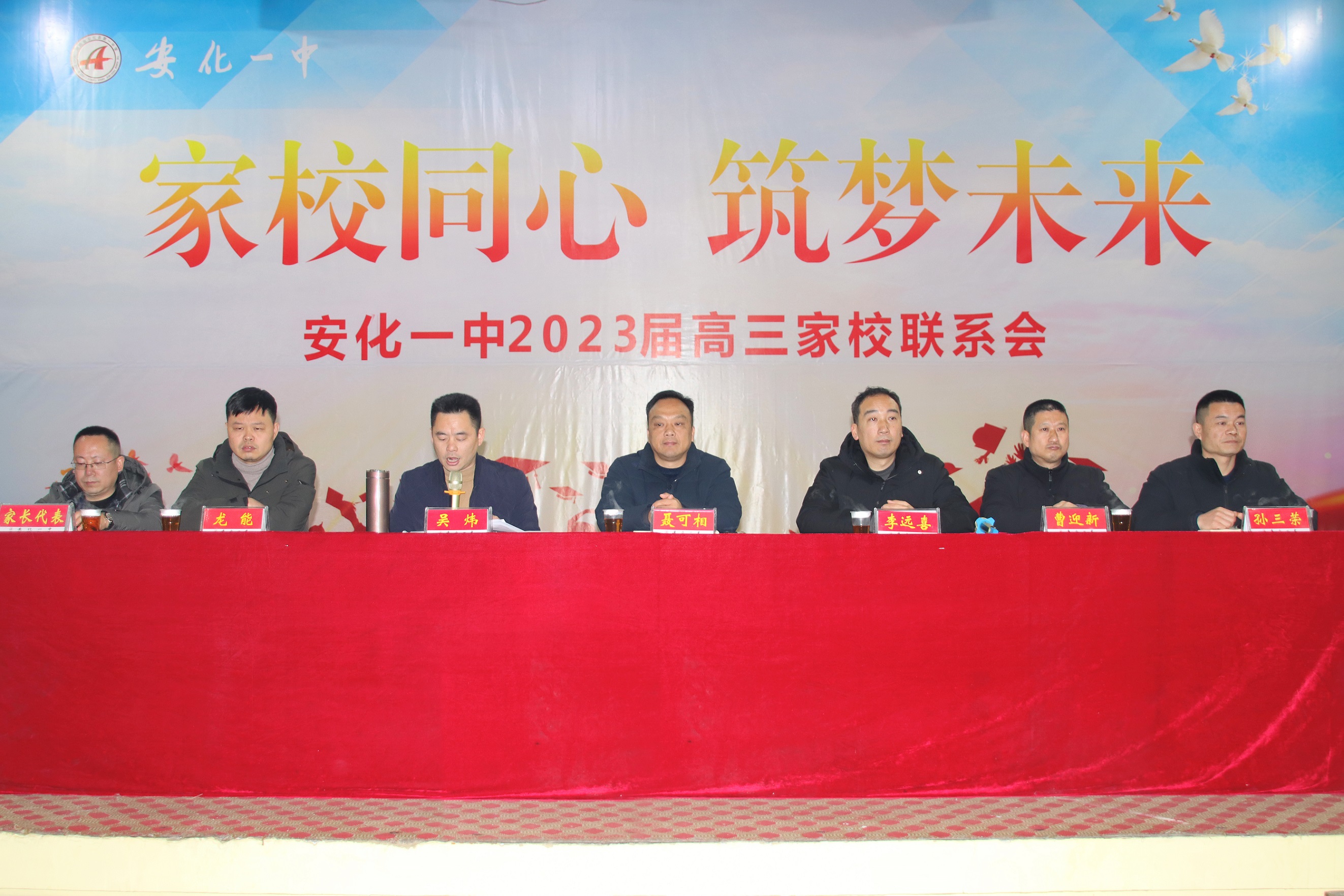 本网讯 2月8日上午,安化一中2023届高三家校联系会在学校礼堂召开。学校党委书记、校长聂可相,副校长李远喜,副校长曹迎新等领导参加,活动由副校长吴炜主持。 吴炜对学校及2023届高三的基本情况进行了简要介绍。学校历史悠久,文化底蕴深厚,红色基因独特,各项成绩斐然;2023届高三成绩进步大,来势喜人。他表示,学校已制定好详细的工作方案,为高三备考保驾护航。 龙能作“高考重要信息和事项”专题报告。他从信息获取、报名、填报志愿等方面对高考重要时间节点及注意事项进行了全面解读。同时,还重点介绍了高校的各项自主招生计划,并对申报的基本流程进行了详细讲解。 家长代表蒋立华提到,成为孩子们坚强的后盾,就要营造一个和谐轻松家庭氛围,与学校、班主任保持积极主动的联系。与孩子一起并肩作战,科学备考。 聂可相作总结发言。学校高度重视高三备考工作,希望各位家长多关注孩子们的学习情况和心理状态,多陪伴,多理解,多帮助。他希望全体高三师生与家长携手共进、同舟共济,共创2023届高考新辉煌。
