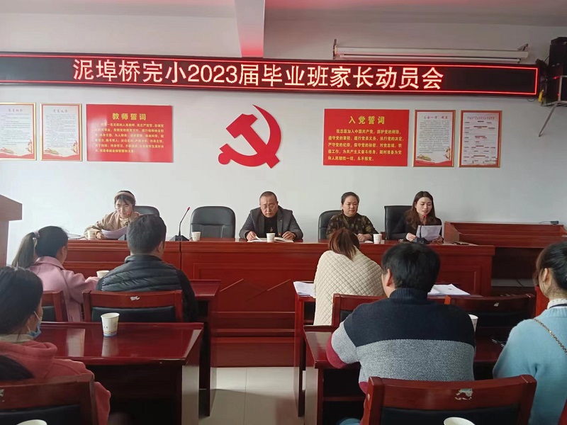 本网讯 春风送暖繁花艳,细雨润物硕果丰。3月10日下午,泥埠桥完小召开毕业班家长会。 会议在家校和谐互动中拉开序幕。校长蒋军致辞,对前来参加会议的家长们表示欢迎和感谢,并发出倡议:望家校携手,耐心陪伴孩子,引导孩子管理时间、提高效率,为孩子步入初中奠定基础,让孩子小学生活不留遗憾。 教导处主任李靖嵘全面介绍了学校的教育教学情况,最后温馨提示家长在教育孩子时要坚定信心,方法得当,为孩子营造好的家庭氛围,培养孩子认真的态度,希望家校紧密合作,为孩子创造美好明天。