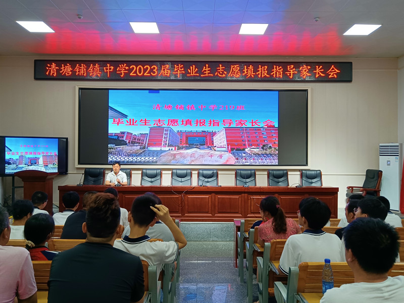 本网讯 5月30日上午,清塘铺镇中学召开2023届毕业班家长会暨志愿填报指导会。学校行政、全体毕业生家长、招生学校代表等600余人参加,会议由副校长吴雄主持。 会上,教导处主任刘丽莉解读2023年中考中招相关政策,介绍中招报考时间节点、志愿填报类别、志愿填报规则等相关工作,提醒家长积极关注今年中考政策变化及中考报名重要节点。校长谭宏光在会上对理解和支持学校工作的所有家长表示感谢,他建议家长:内心强大,少一点焦虑传递;积极参与,多一点正面引导;加强沟通,信任老师和自己的孩子;量体裁衣,志愿填报契合孩子实际。 学校大会后,九年级各班分别召开班级家长会,班主任就如何填报中考志愿作详细说明与具体指导,帮助学生和家长把握政策和准确定位,家长们和孩子共同商议选择最适合的志愿,并填写好纸质志愿书。