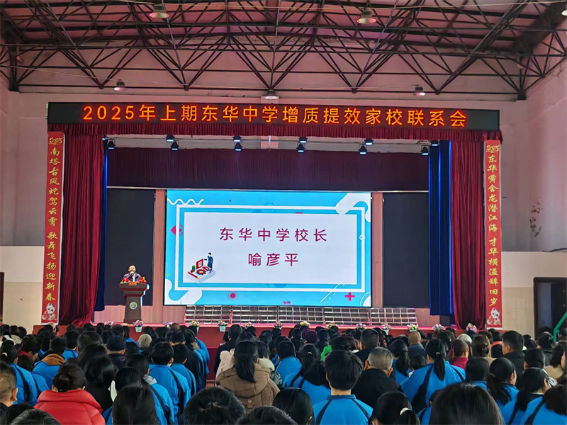 本网讯 2月21日,梅城镇东华中学在风雨球场举办“家校合力,护航成长”九年级家长会。 德育副校长肖智担任主持,教学副校长眭向葵对毕业班的教学情况进行了全面而深入的剖析,并通过因材施教、分层教学和辅优补齐等措施提出了针对性地提升策略,为家长们提供了清晰的教育导向。家长代表付兵云和王宋相继发言,他们结合自身的家庭教育经验,分享了宝贵的家教心得,为在场的家长们提供了有益的参考。学生代表周盼和郑晋豪上台分享了各自的学习方法与心得,表达了对学习的热爱和对未来的美好憧憬,展现了东华学子的风采。 此外,安化一中督学熊凌云老师受邀出席并发表讲话。她凭借丰富的教育实践经验,分享了成功案例与有效方法,为东华中学的教育理念落地提供了有益的借鉴和启示。她的精彩发言赢得了在场家长和教师的阵阵掌声。 学校党支部书记、校长喻彦平随后作总结发言,他强调,每个学生都是独一无二的个体,学校将致力于为学生提供个性化的教学服务,确保每个学生都能在适合自己的环境中茁壮成长。他认为此次家长会的成功举办,不仅加强了家校之间的沟通与联系,也让家长们更加深入地了解了学校的教育理念和教学策略。 初审初校:曹靖阳 复审复校:肖 智 终审终校:喻彦平