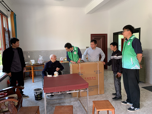 每年5月的第三个星期日为全国助残日,为切实做好残疾人帮助和扶持工作,提高残疾人生活自理能力,让残疾人群体感受到党和政府的关爱,促进残疾人事业全面发展,5月14日,安化县住建局驻村工作队组织蚩尤社区“两委”成员,专程来到原老支书张祖迎家,为其送上爱心轮椅。