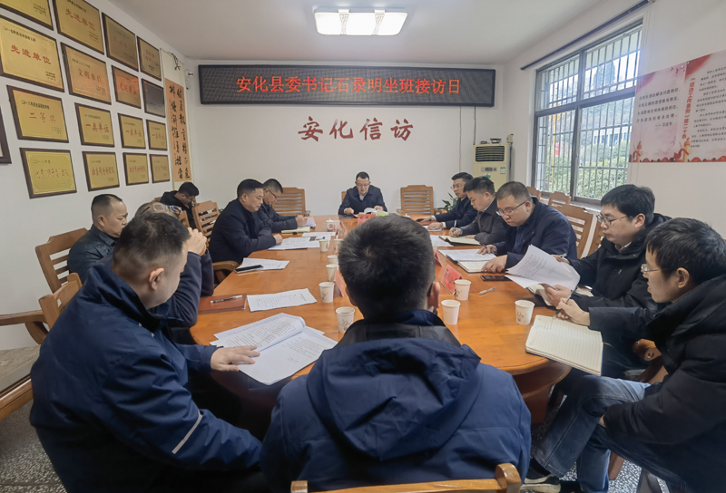 2月18日,安化县委书记石录明到县信访局坐班接访,面对面倾听群众心声,用心用情解决好群众“急难愁盼”实际问题。