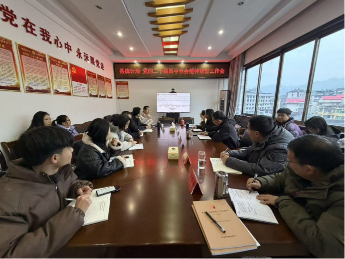 为深入学习贯彻党的二十届四中全会精神,切实把全局干部职工的思想和行动统一到党中央决策部署上来,1月27日,县统计局召开专题宣讲工作会,特别邀请县委党校熊吉秋老师参与授课,全局干部职工参加会议。