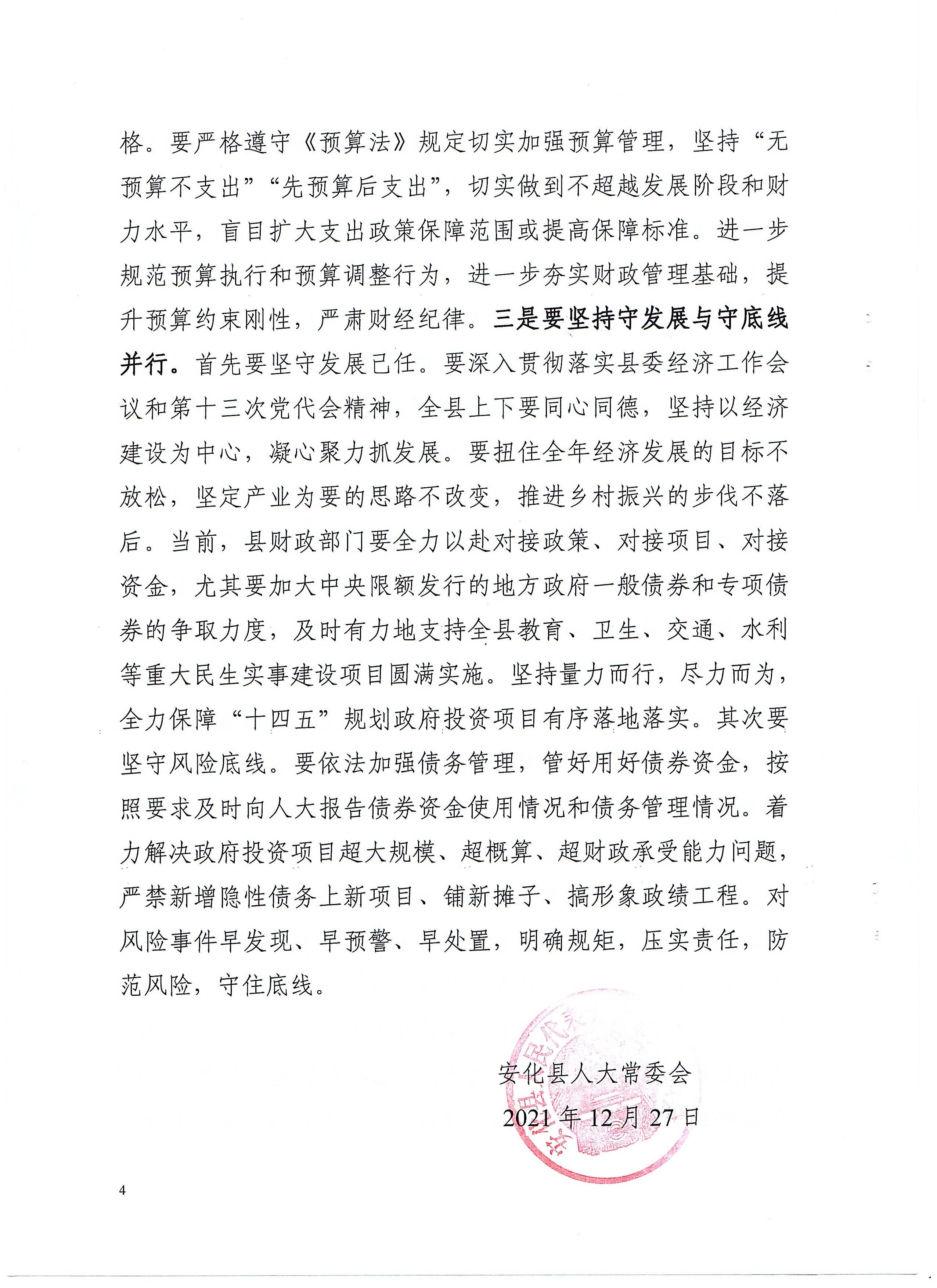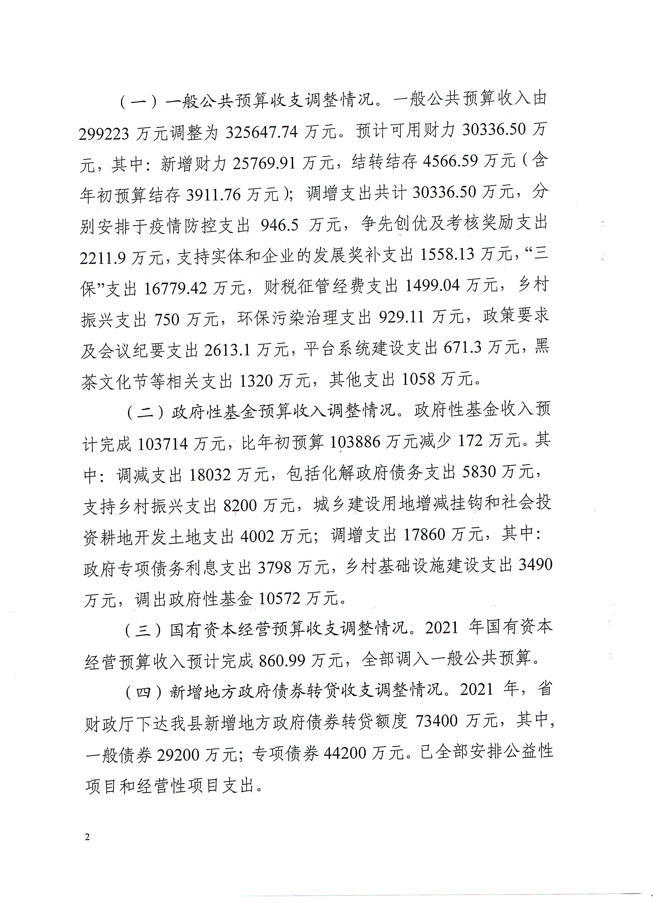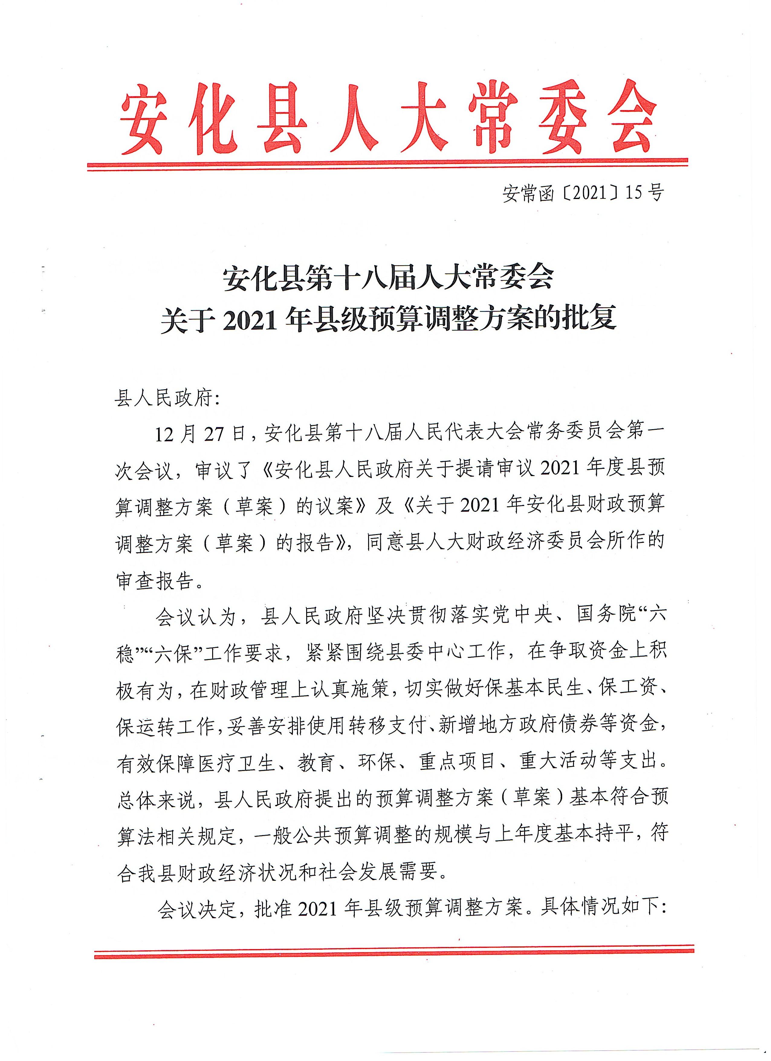 安化县人大常委会关于2021年县级预算调整方案的批复