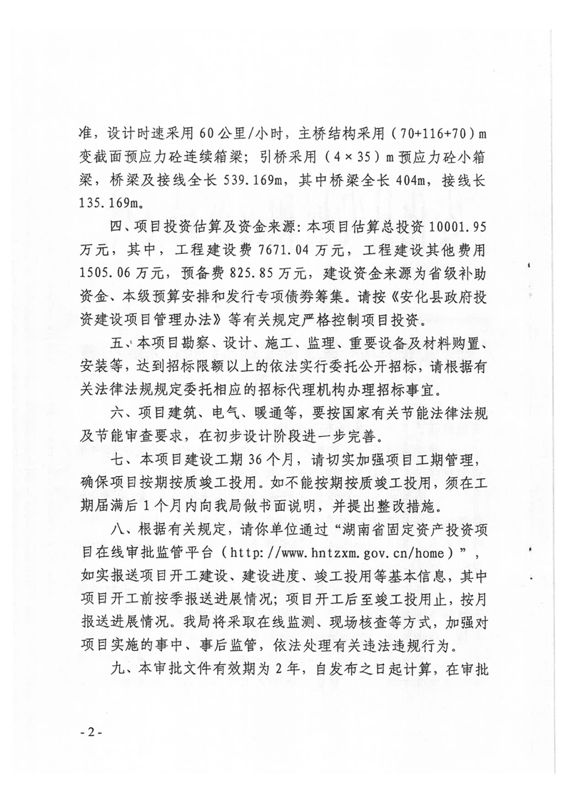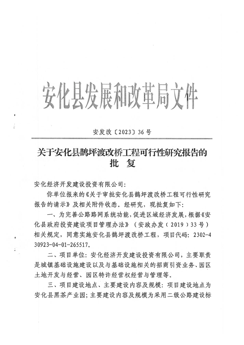 关于安化县鹊坪渡改桥工程可行性研究报告的批复