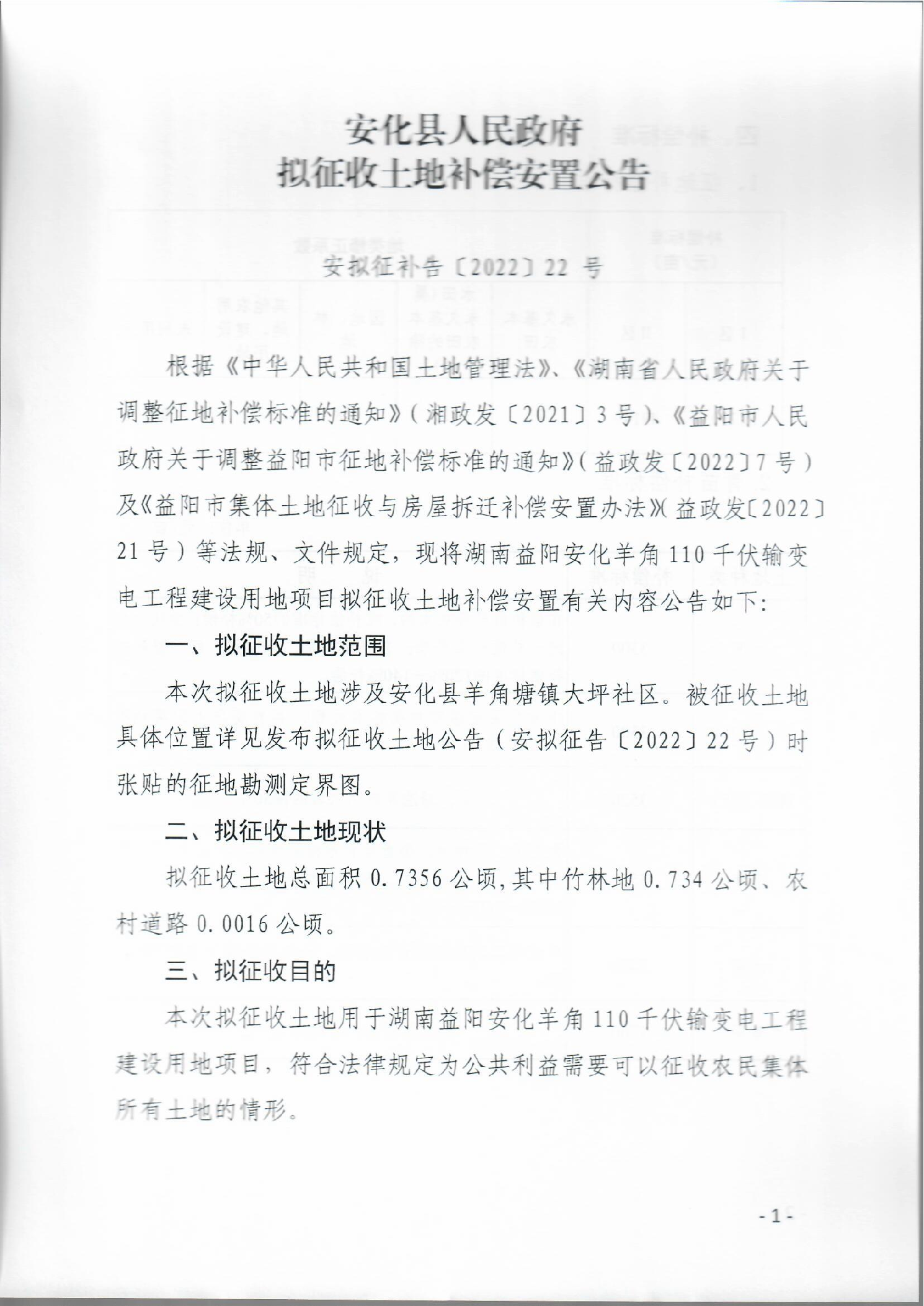 安化羊角110千伏输变电工程建设用地项目拟征收土地补偿安置公告