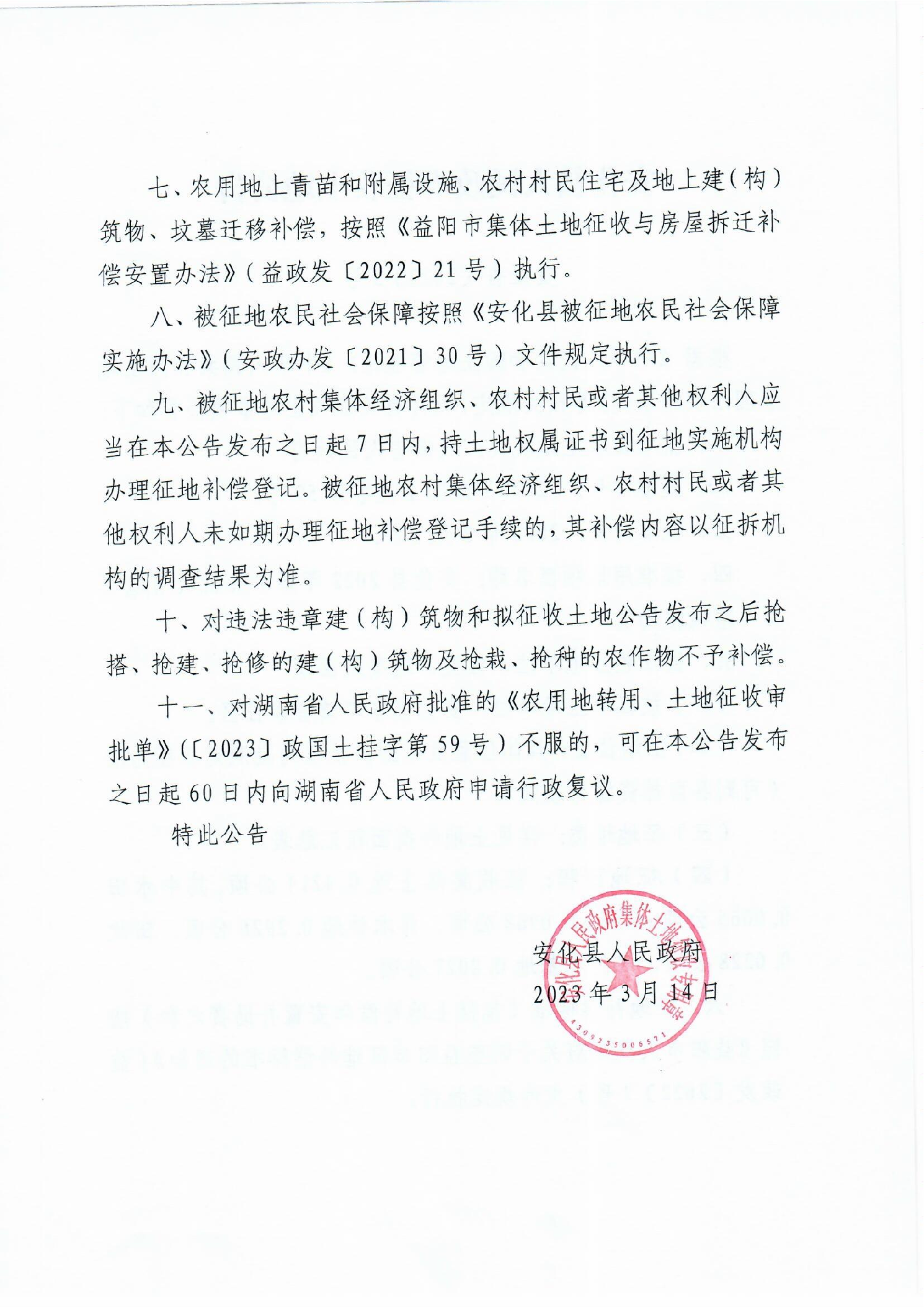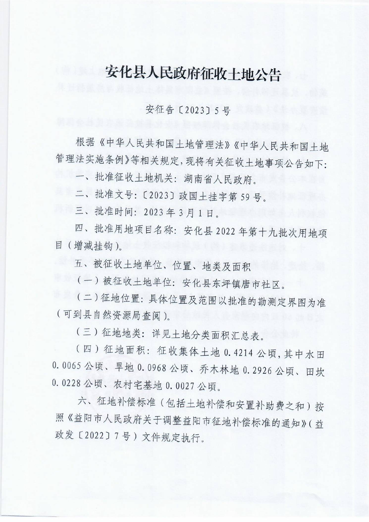 安化县人民政府征收土地公告