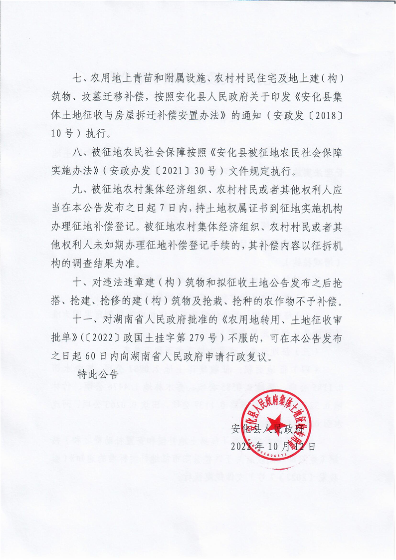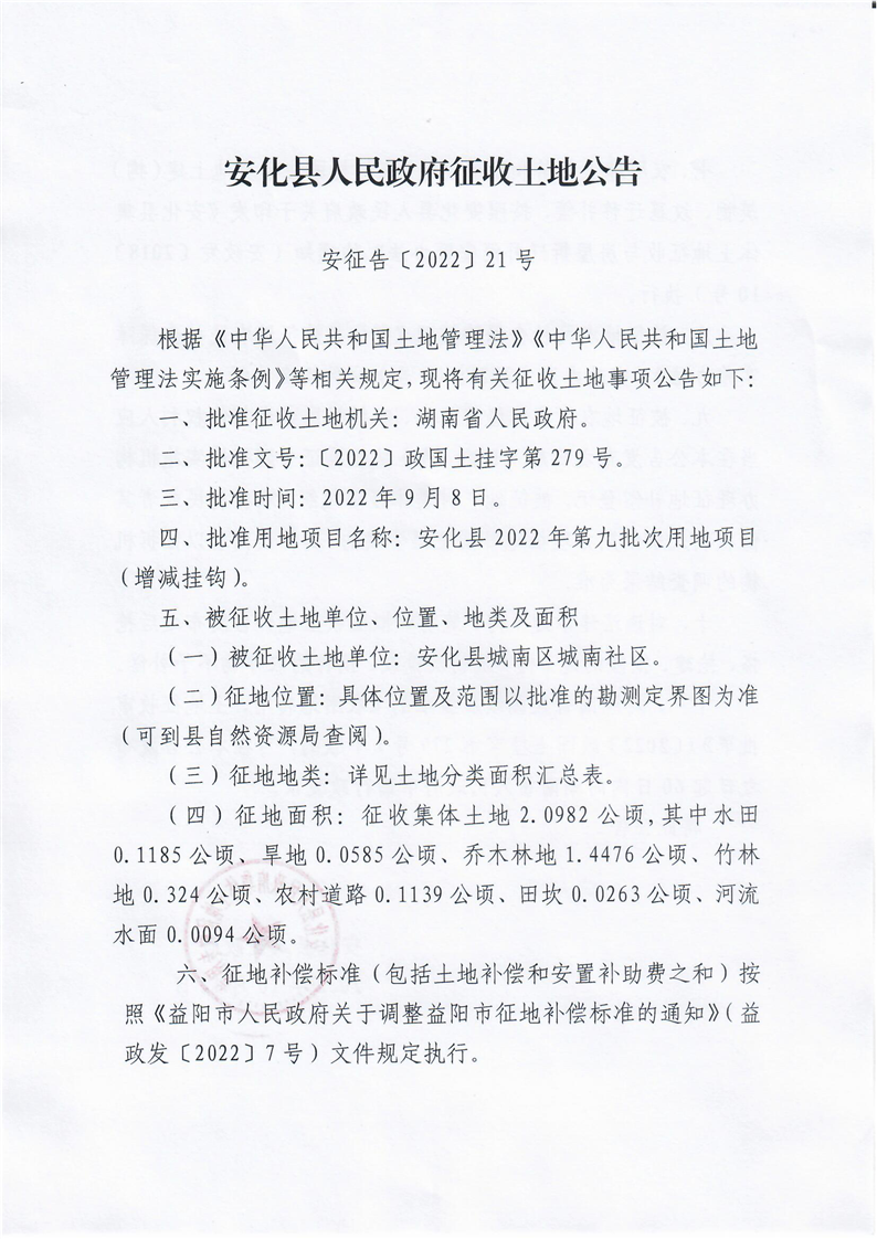 安化县2022年第九批次用地项目(增减挂钩)征收土地公告