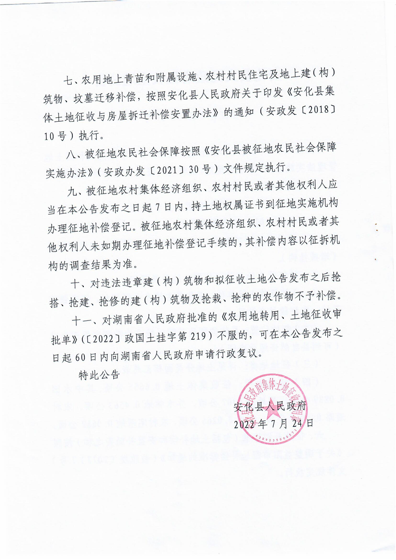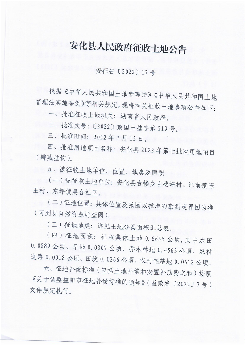 安化县2022年第七批次用地项目(增减挂钩)征收土地公告
