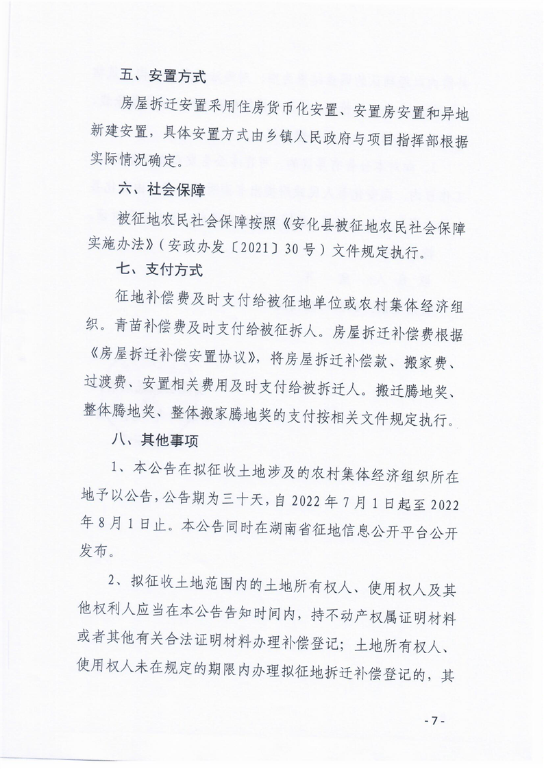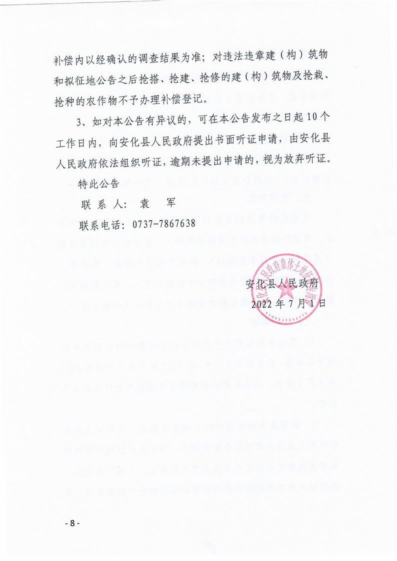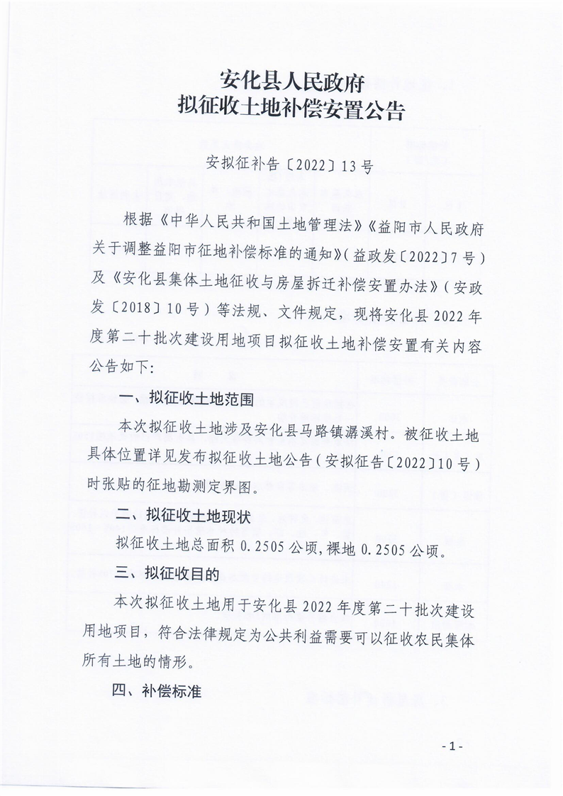 安化县2022年度第二十批次建设用地项目拟征收土地补偿安置公告