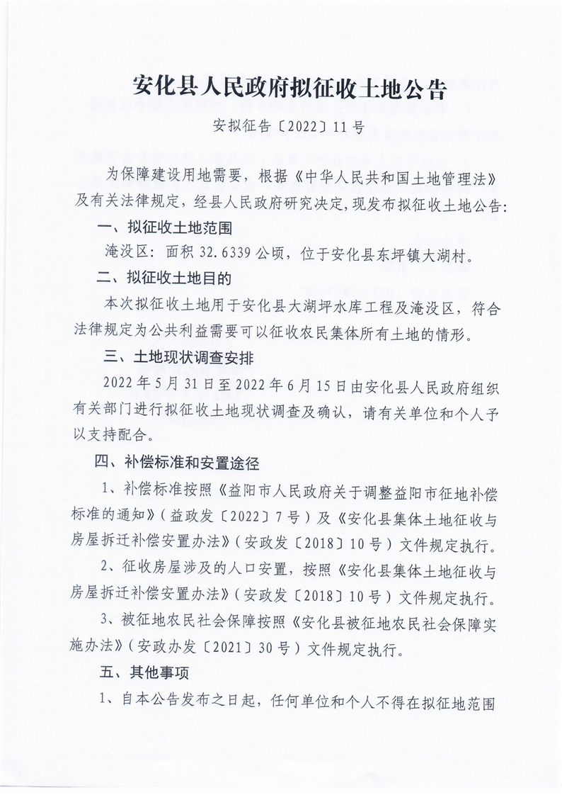 安化县大湖坪水库工程拟征收土地公告