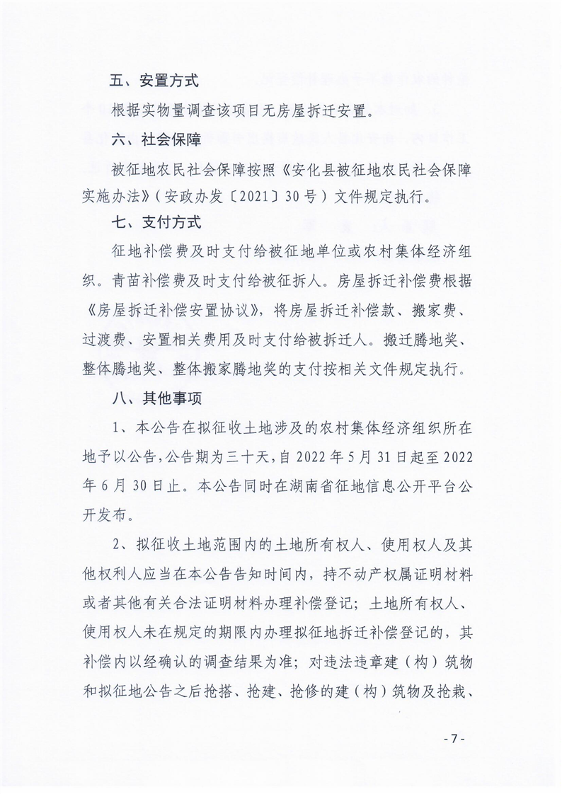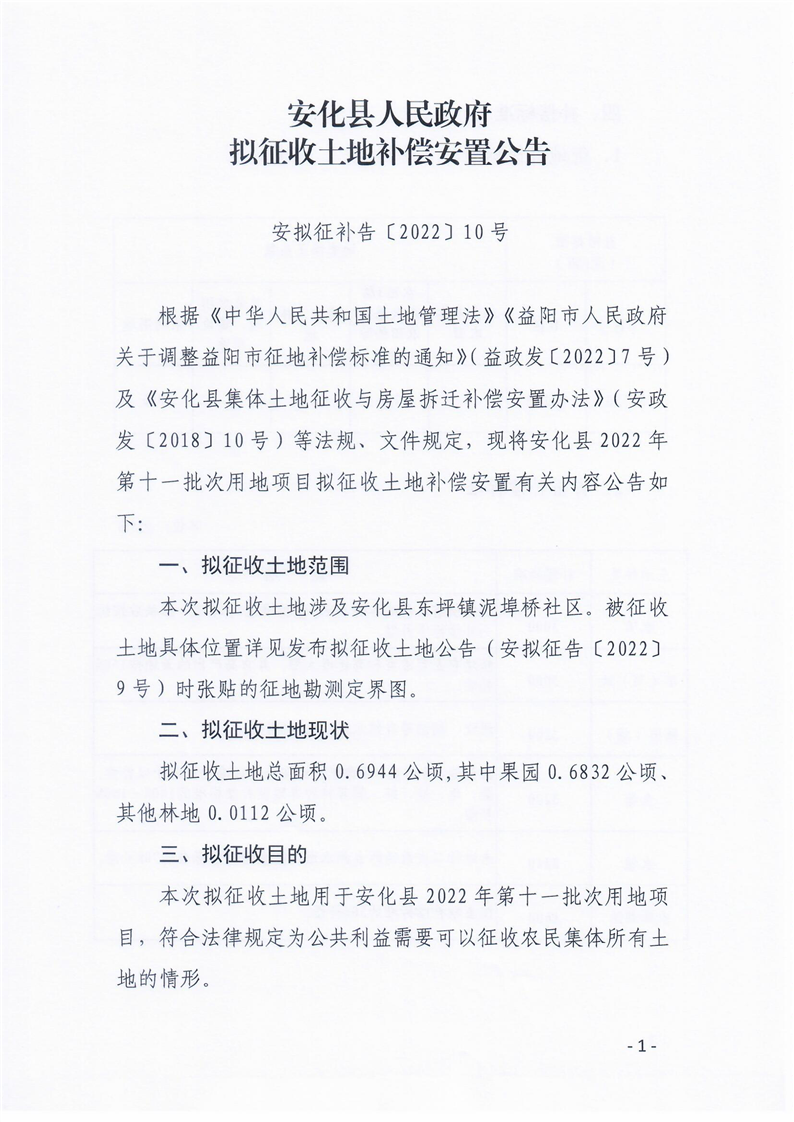 安化县2022年第十一批次用地项目拟征收土地补偿安置公告