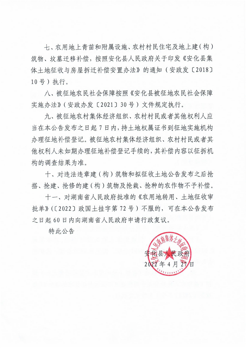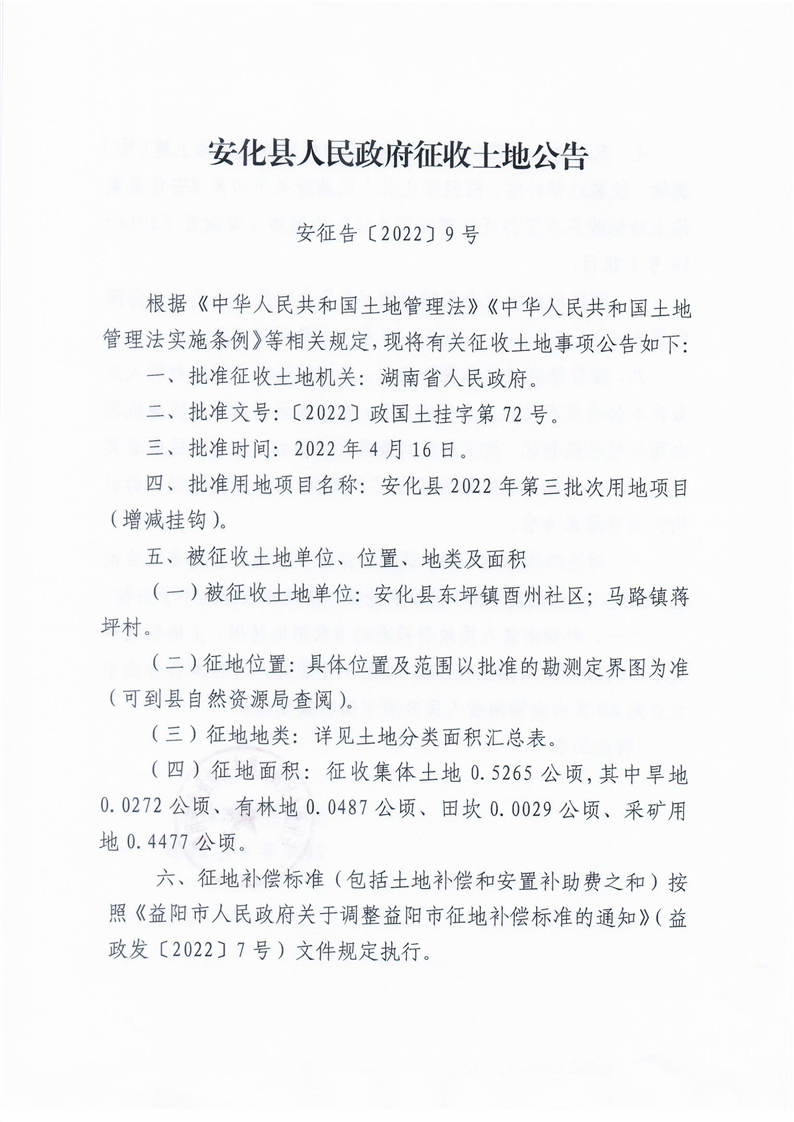 安化县2022年第三批次用地项目(增减挂钩)征收土地公告