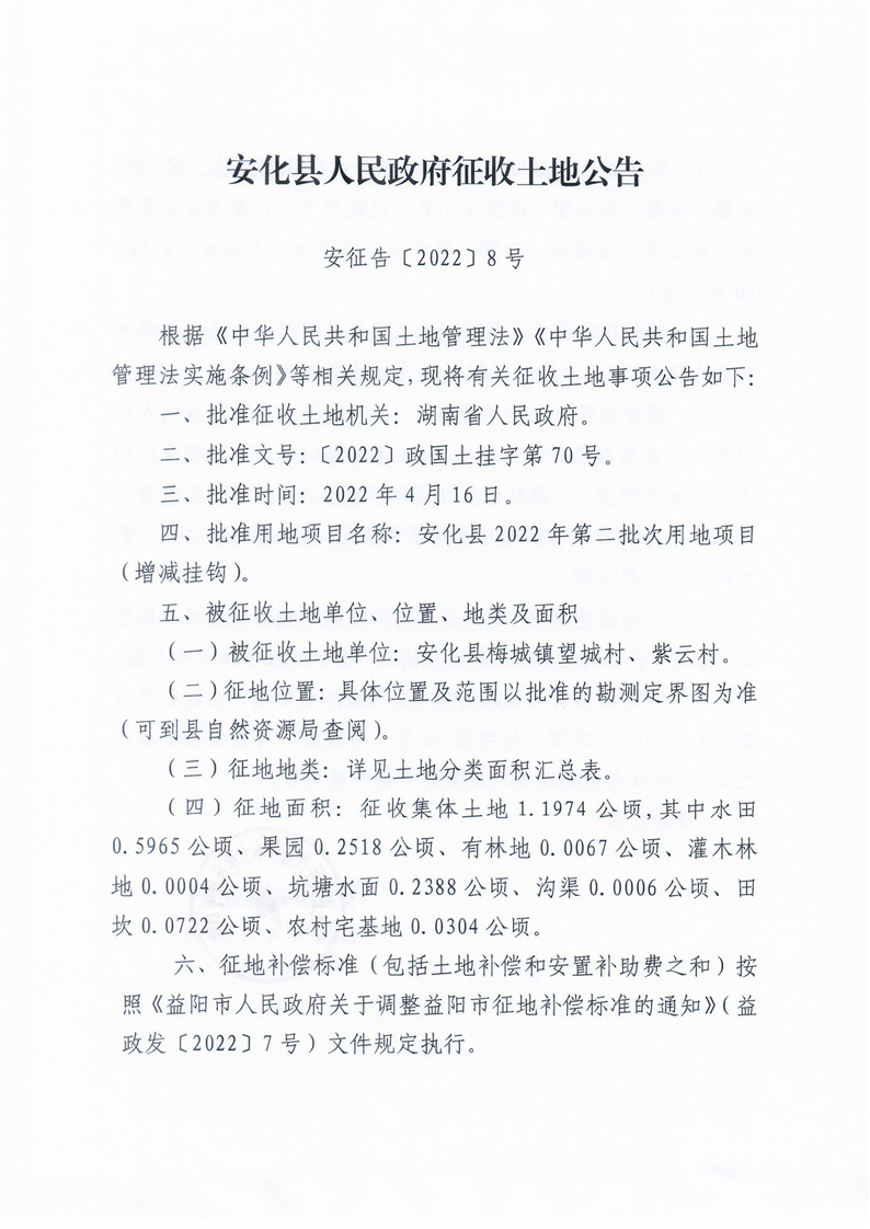 安化县2022年第二批次用地项目(增减挂钩)征收土地公告