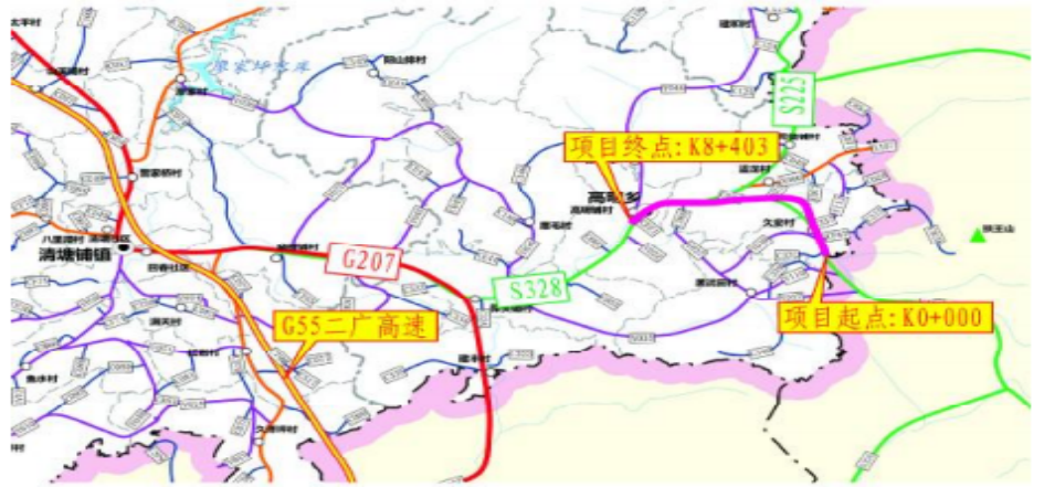 附件3项目概况 一、相关区域路网现状及规划(包括道路及交通工程设施现状及规划) 拟建项目全线位于益阳市安化县,项目影响区内与项目密切相关的道路主要有二广高速、S225、G207 等公路。拟建公路起点位于宁乡安化界(对应 S328 老路桩号 K85+650), 终点与 S328 老路桩号 K94+077 相接,形成宁乡至安化区域向外联系的交通主干道,并可通过娄益高速辐射毗邻城镇,延伸全国,构成干支相连、内外直达的社会化综合交通体系。 本项目根据老路现状和交通量发展水平、沿线地形地质条件城镇化发展和土地开发情况等因素,原则同意部分利用老路扩建、部分新建的路线方案。路线起于S328安化县高明乡与宁乡市龙田镇交界处白花村(老路桩号K85+840),顺接S328宁乡市青山桥至安化高明公路(宁乡段),经杨柳坝、高明工业园、南屋坑、适龙,止于高明乡(S328老路桩号K94+077)。路线全长8.403公里。 二、建设规模及技术标准 根据交通量预测结果和拟建项目在路网中的功能作用,采用二级公路标准建设,设计速度40公里/小时(其中适龙村0.1公里受永久基本农田限制采用三级公路标准建设,设计速度30公里/小时),杨柳坝至南屋坑段2.363公里路基宽度12米,其余路段6.04公里路基宽度8.5米,其中有两座大桥(北斗冲大桥桥长126米、南屋坑大桥桥长126米)。桥涵设计汽车荷载等级采用公路-Ⅰ级。其余技术指标应符合部颁《公路工程设计标准》(JTG B01-2014)的规定。本项目估算总投资约为14935万元。 三、招标范围(标段划分及主要工作内容) 现对该项目K0+000~K8+403的路基、路面、桥梁、涵洞、交叉、交通安全设施等工程的一阶段施工图勘察设计公开招标。主要工作内容为本项目的路线、路基、路面、桥梁、涵洞、交叉、交通安全设施等工程的一阶段施工图勘察设计工作,并提供设计文件以及编制施工招标文件所需要分标段的图纸、工程量清单、工程量清单预算,施工现场配合服务等全部工作。本次招标工程勘察设计共分为1个标段。 四、招标项目位置示意图